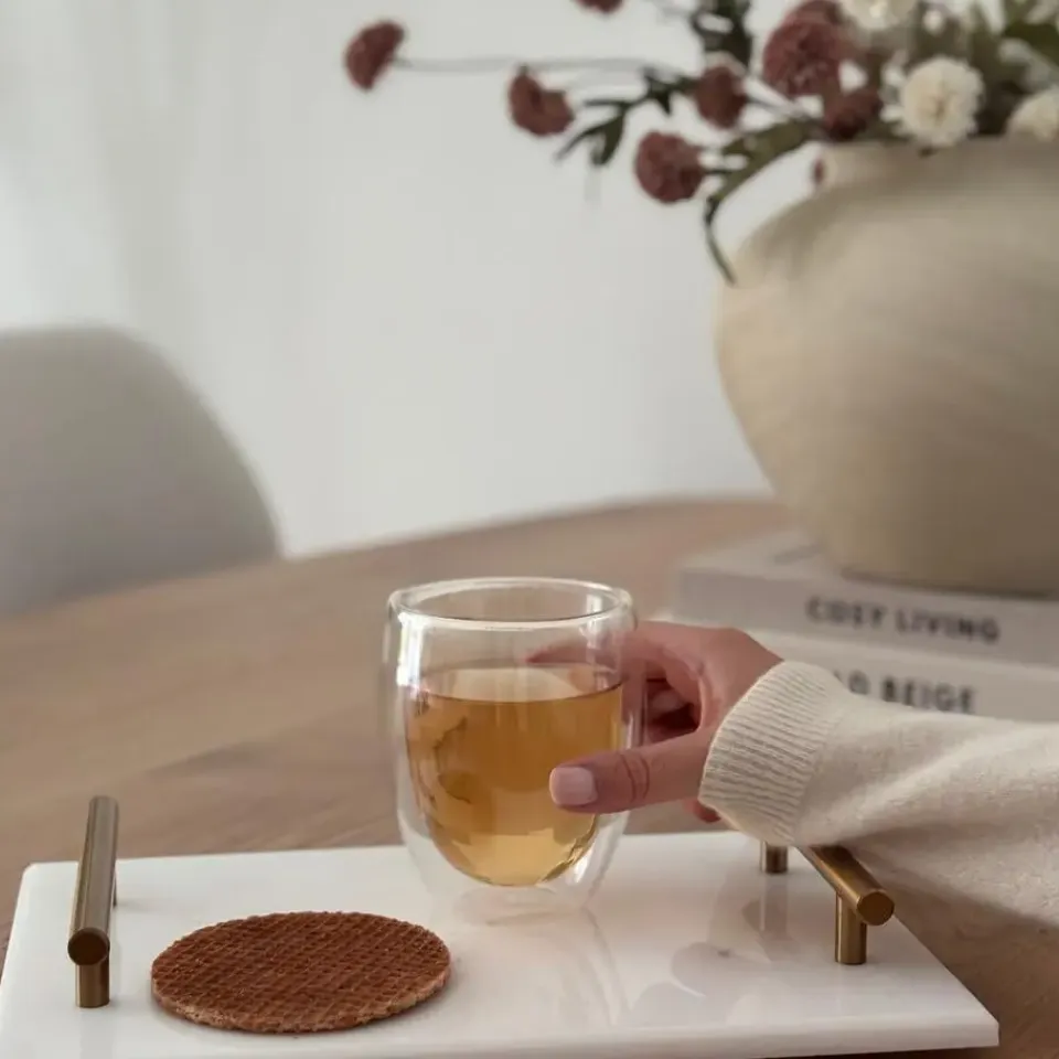 Marmer is een erg stijlvol en luxe materiaal. Dit materiaal wil je natuurlijk niet per ongeluk beschadigen als je het presenteerblad met handvaten ergens neerzet. Daarom is dit dienblad voorzien van handige antislip doppen aan de onderkant. Hierdoor wordt het marmer beschermt tegen beschadigingen en blijft het blad altijd stevig staan. Je hoeft dus niet bang te zijn dat het blad per ongeluk verschuift. Wat je ook presenteert op het dienblad, het blijft altijd perfect staan waar jij het neerzet.