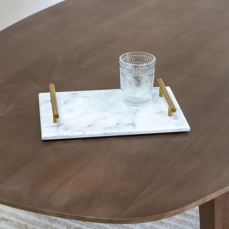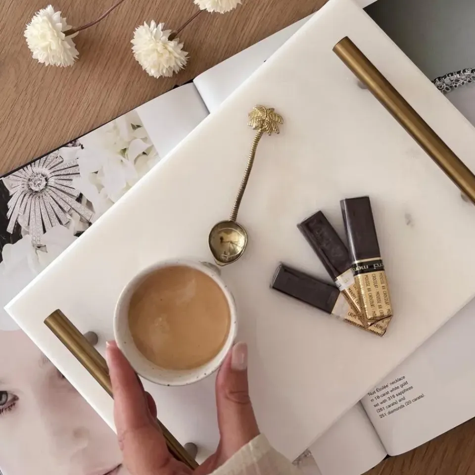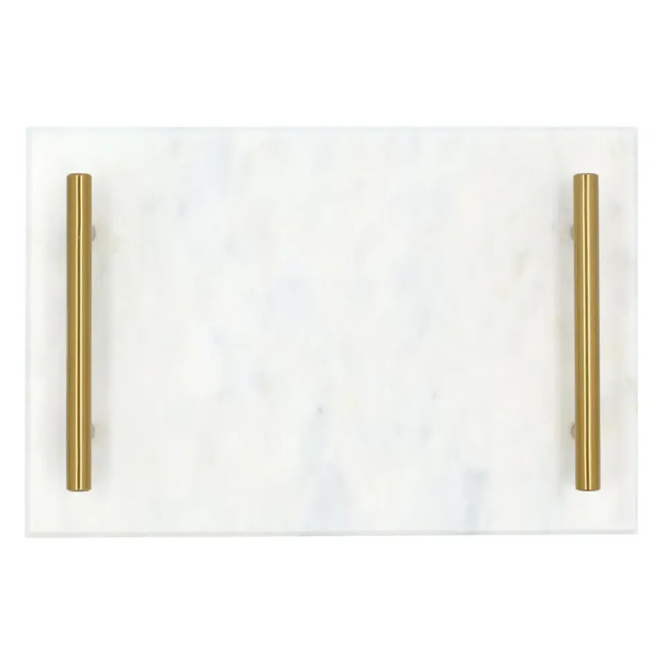 Daar kan dit marmeren dienblad van QUVIO je zeker bij helpen. Het dienblad heeft een luxe uitstraling. De gouden handvaten maken van dit presenteerblad bovendien een echte blikvanger. Gebruik het als decoratief dienblad en je hebt direct een opvallende en chique blikvanger in de kamer. Waar zet jij dit dienblad met gouden handvat neer?