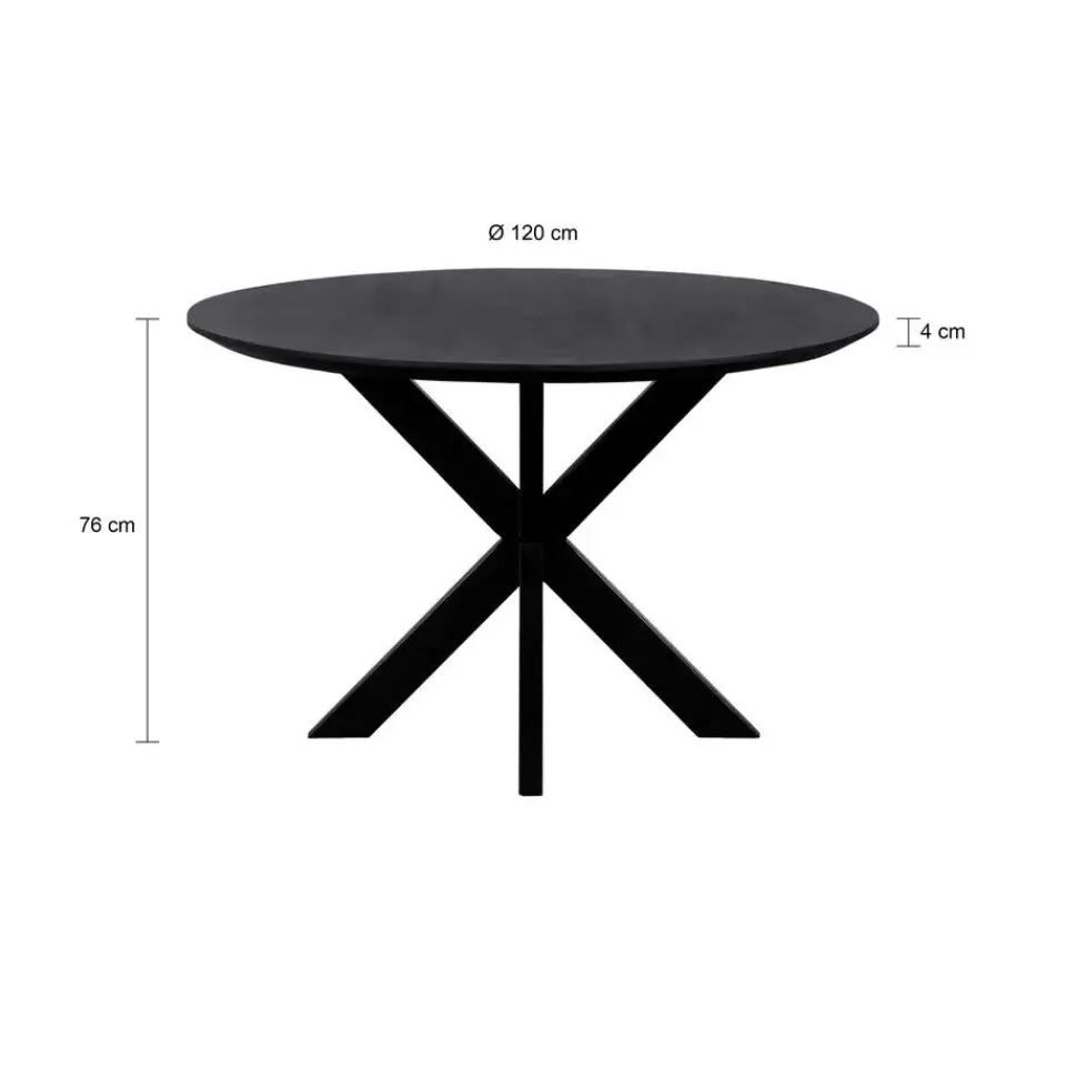 Met een diameter van 120 cm biedt deze eettafel voldoende ruimte voor vier tot zes personen, ideaal voor zowel kleine als grote eetkamers. De tafel is eenvoudig te combineren met verschillende stoelen en past perfect in diverse interieurstijlen van modern tot industrieel