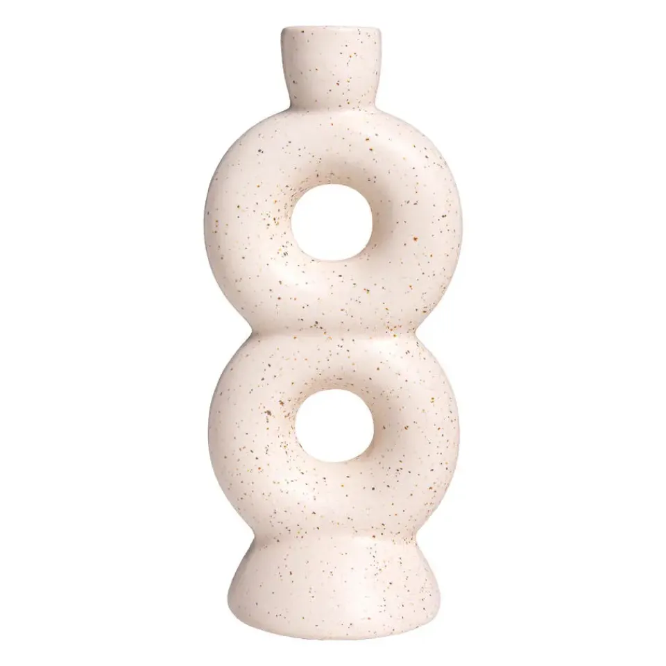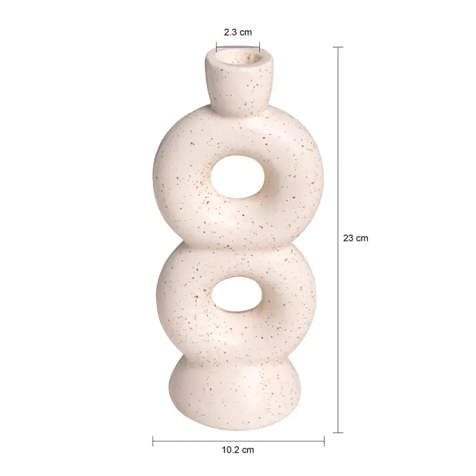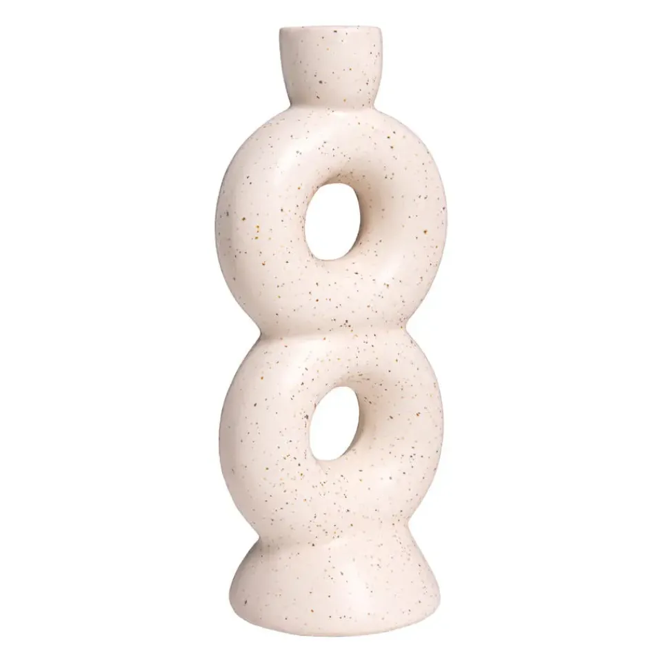 Ontdek de infinity kandelaar, gemaakt van hoogwaardig keramiek in een stijlvolle gebroken witte kleur. Het unieke infinity ontwerp is niet alleen een blikvanger, maar ook functioneel. Perfect voor een romantisch diner of om een gezellige sfeer in je woonkamer te creëren, deze kandelaar staat goed in iedere omgeving.