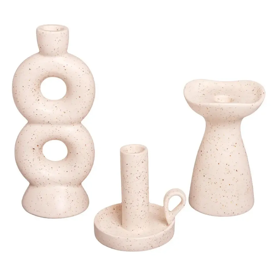 Het design van de kandelaar is een toonbeeld van moderne elegantie, geïnspireerd door het symbolische infinityteken. De mooie rondingen en de gebroken witte kleur van het keramiek zorgen voor een minimalistische sfeer. Deze kandelaar is niet alleen een bron van licht, maar dient ook als een opvallend decoratief element in elk interieur. De unieke vorm biedt een stabiele basis voor de kaarsen.