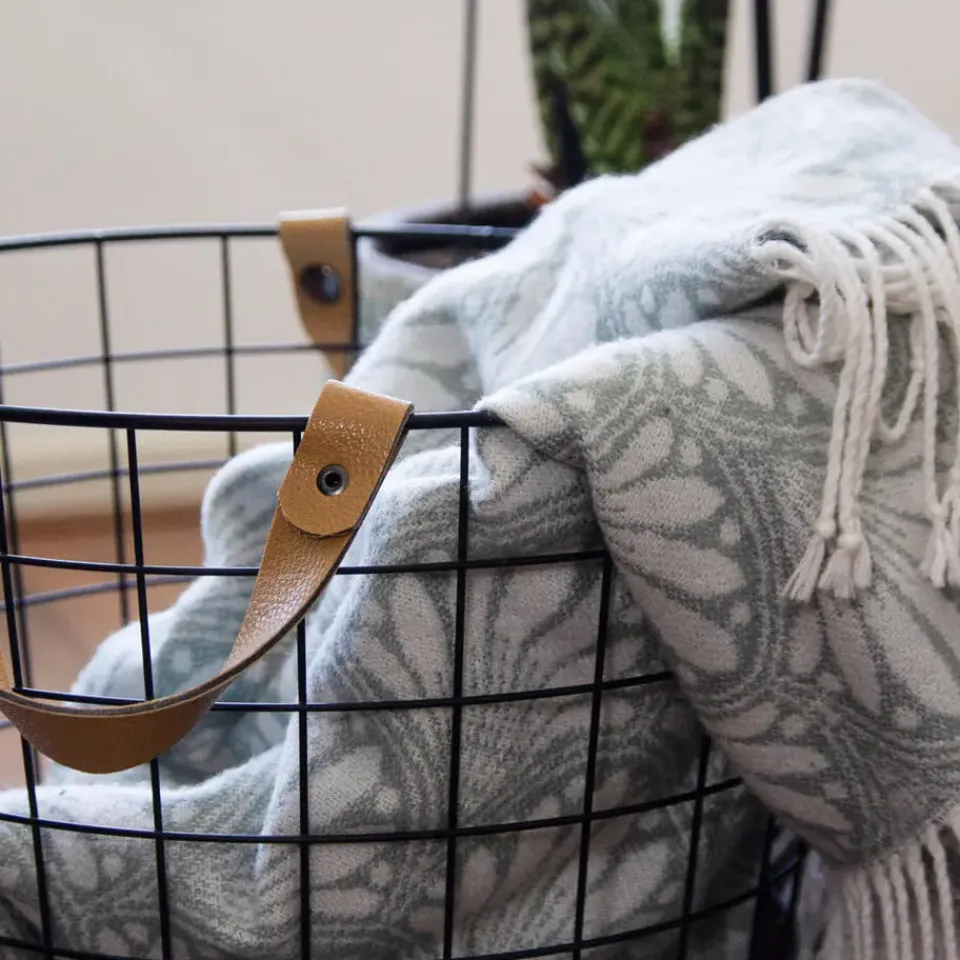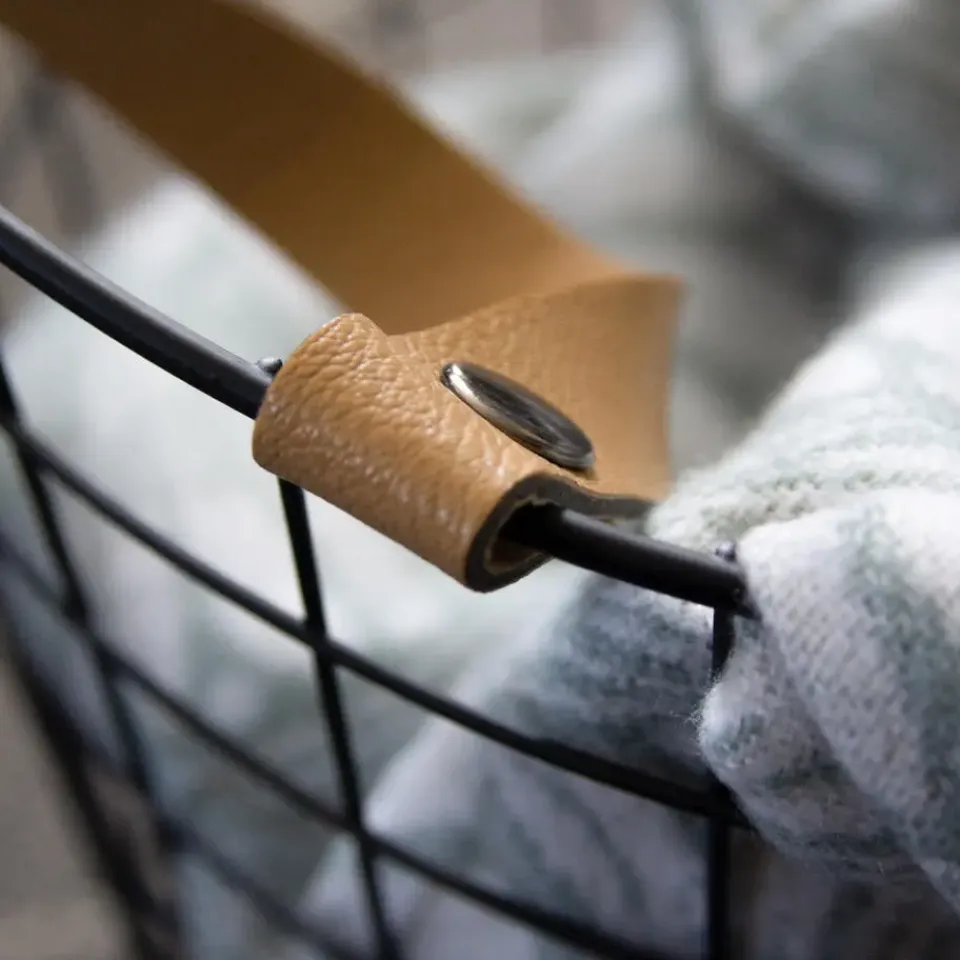 Door de leren handvaten is de mand gemakkelijk te verplaatsen. Je kan de mand in de woonkamer neerzetten om daar bijvoorbeeld kleedjes in op te bergen,maar ook is de mand handig voor het opbergen van tijdschriften,huishoudspullen,sjaals en handschoenen,kranten en nog veel meer!