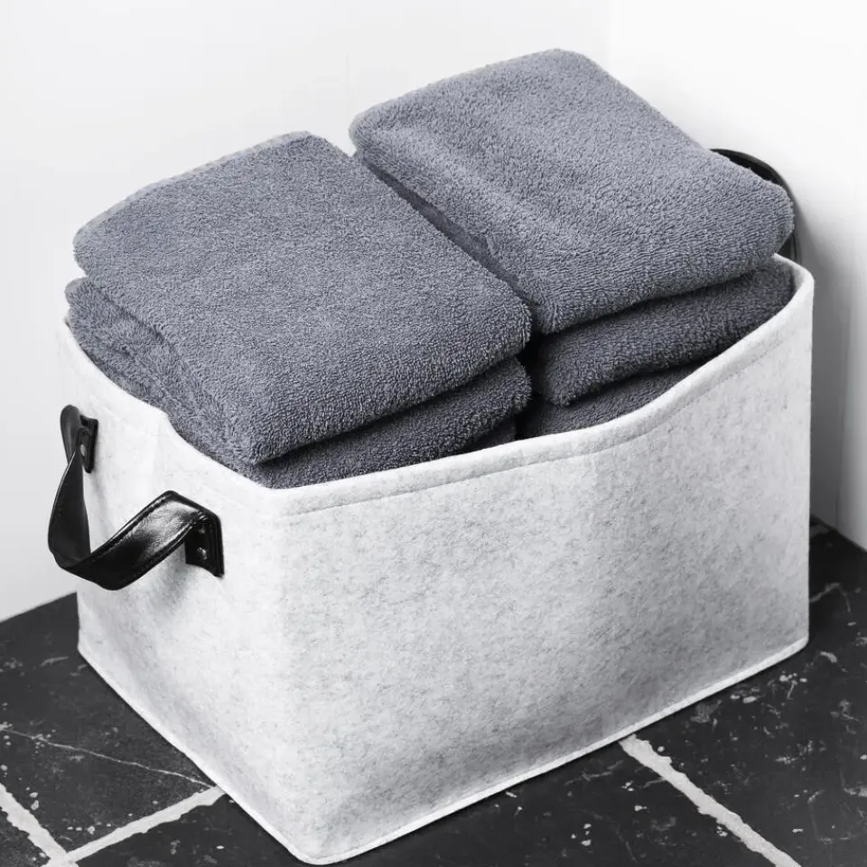 Wat betreft het materiaal waaruit dit product bestaat is het een opbergmand van vilt. Het product is stevig en bruikbaar voor talloze producten. Opruimen en organiseren is mogelijk op de manier die je zelf fijn vindt. Wat betreft de kleur is deze opbergmand grijs. Omdat grijs ook een kleur is die met veel andere kleuren matcht, kan het in diverse kamers worden gebruikt. Natuurlijk kun je de box opbergen in een kast, maar ook als de box in zicht blijft ziet hij er mooi uit en geeft de kleur in combinatie met de netheid een mooie uitstraling. Ook omdat de kleur niet storend voor het oog is past het bijna overal wel bij.