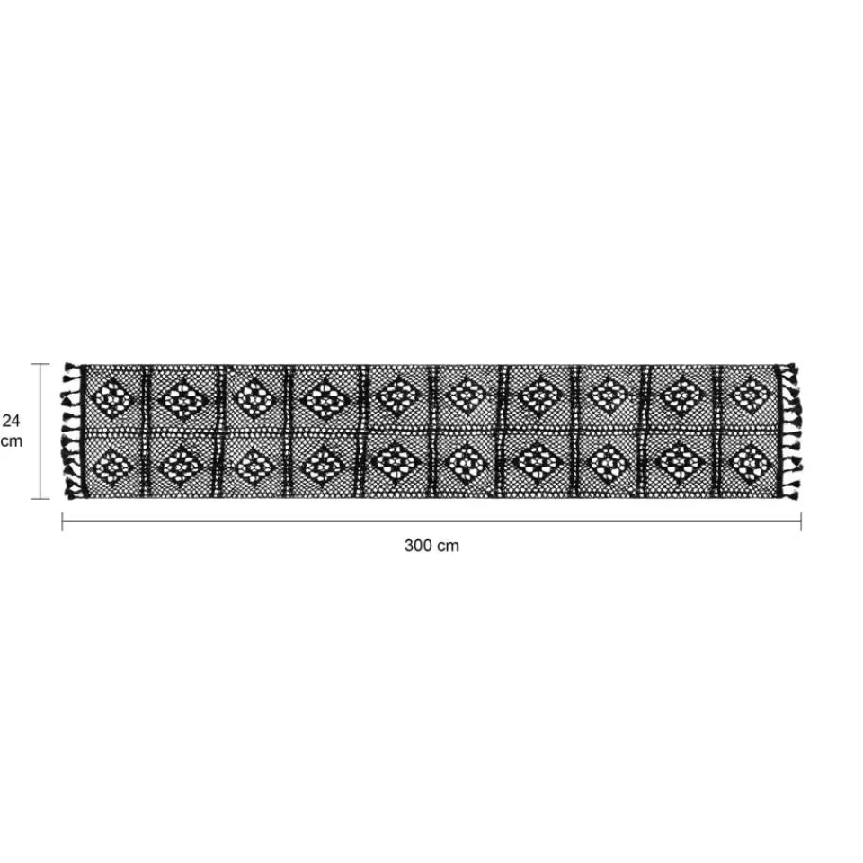 De zwarte kleur zorgt ervoor dat het kleed perfect past binnen iedere stijl interieur. Het kleed heeft een afmeting van 24 x 300 centimeter en is gemaakt van katoen. De franjes aan de uiteinden van het kleed zorgen ervoor dat ook de zijkant van de tafel in een extra leuk jasje wordt gestoken.