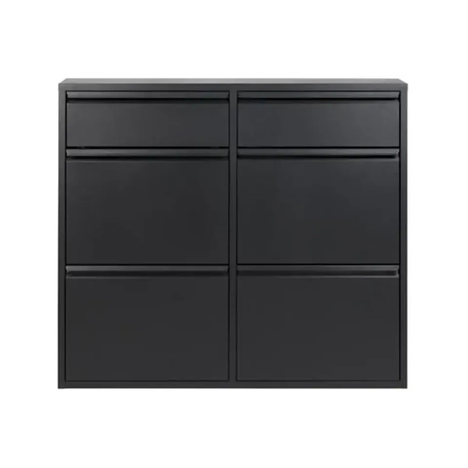 Deze Pippen schoenenkast is zowel functioneel als decoratief. De strakke lijnen passen perfect in een hedendaagse woning. Ergens doet ze ook vintage aan en ze heeft ook een industrieel gehalte. Het is een ondiepe kast, maar je hebt toch nog ruimte om ze te decoreren. Plaats er fotolijsten of een plant op. Hang een spiegel of een wandplank boven de kast en plaats een staande kapstok ernaast. Zo krijgt je schoenenhoekje plots een ongeziene charme.