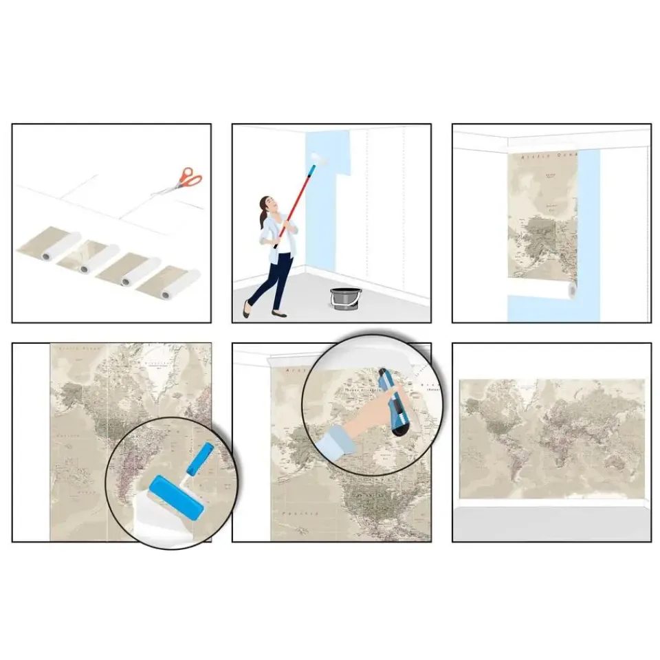 Met duidelijke instructie. Lijm op de muur en plakken.