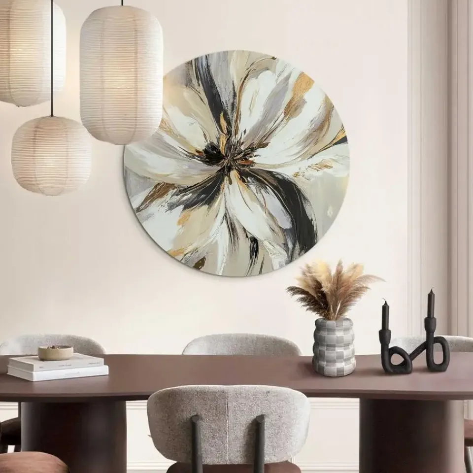 Print op 4mm dik ESG-veiligheidsglas, compleet met voorgemonteerde wandmontage en afstandhouders. De ronde vorm van de glasprint onderstreept op subtiele wijze het kenmerkende karakter van de afbeelding. Kenmerken