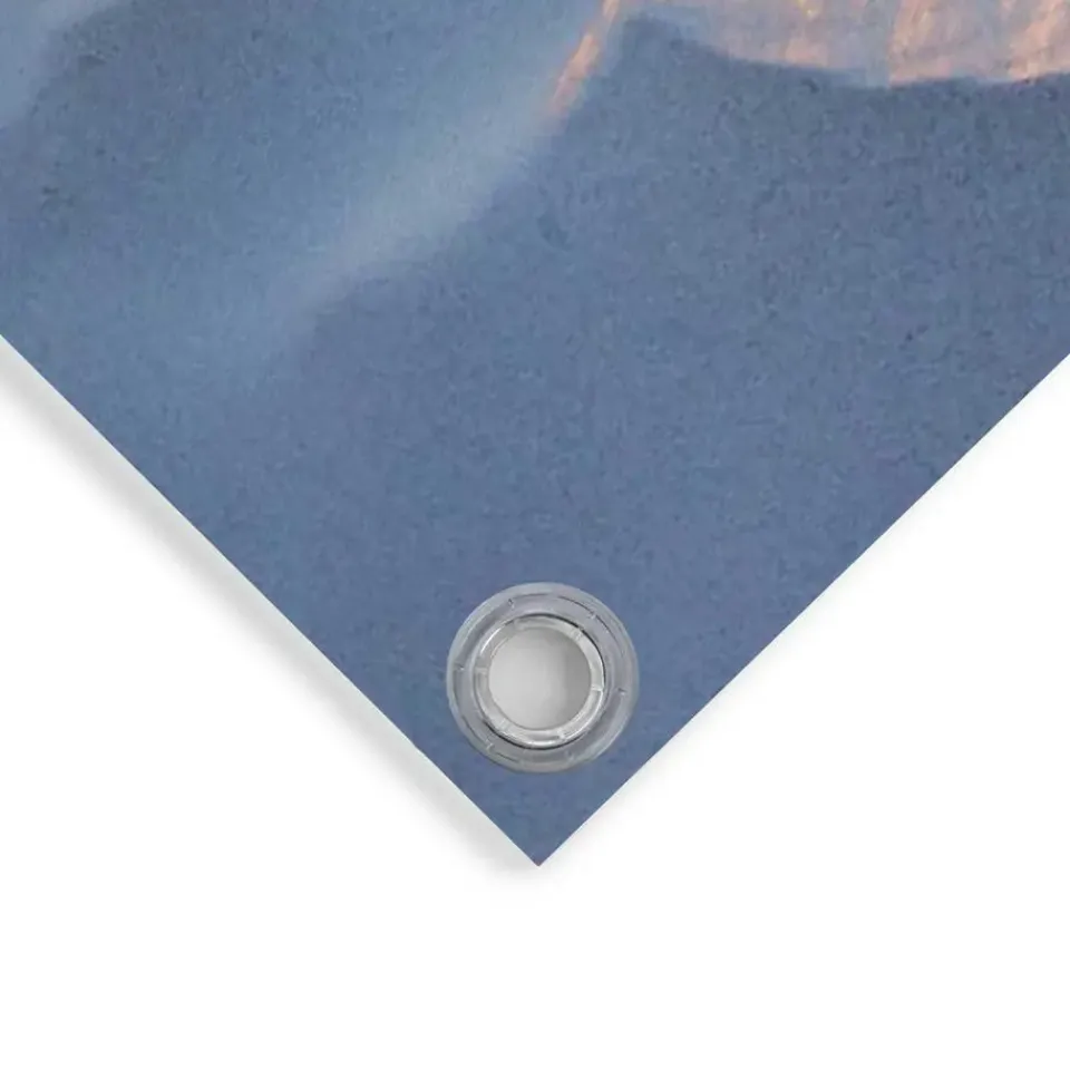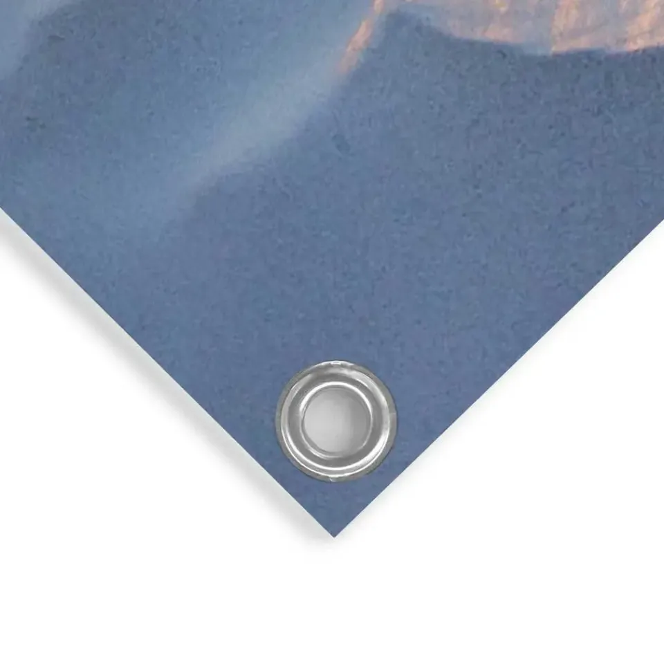 Onze tuinposter geeft je tuin, terras of balkon in één keer een nieuwe uitstraling. In een handomdraai maak je van een saaie muur of schutting een echte blikvanger. De poster wordt geprint met een 6-kleuren latexprinter op mat polyester canvas. Dit doek is geschikt voor buitengebruik en bestand tegen zonlicht en regen. Ophangen is eenvoudig dankzij de voorgemonteerde kunststof ringen; gebruik hiervoor schroeven, spijkers of spanelastieken (niet meegeleverd). Voor een extra lange levensduur hang je de tuinposter bij voorkeur onder een veranda of afdak. Let op: na verloop van tijd kan de afbeelding door direct uv-licht verkleuren. Kenmerken