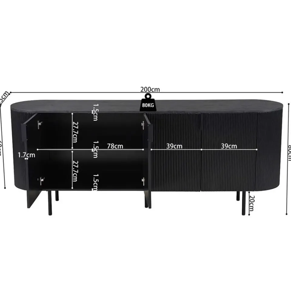 - 200cm x 45cm x 80cm (lengte x breedte/diepte x hoogte)