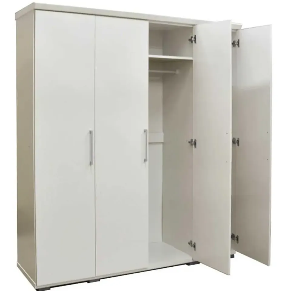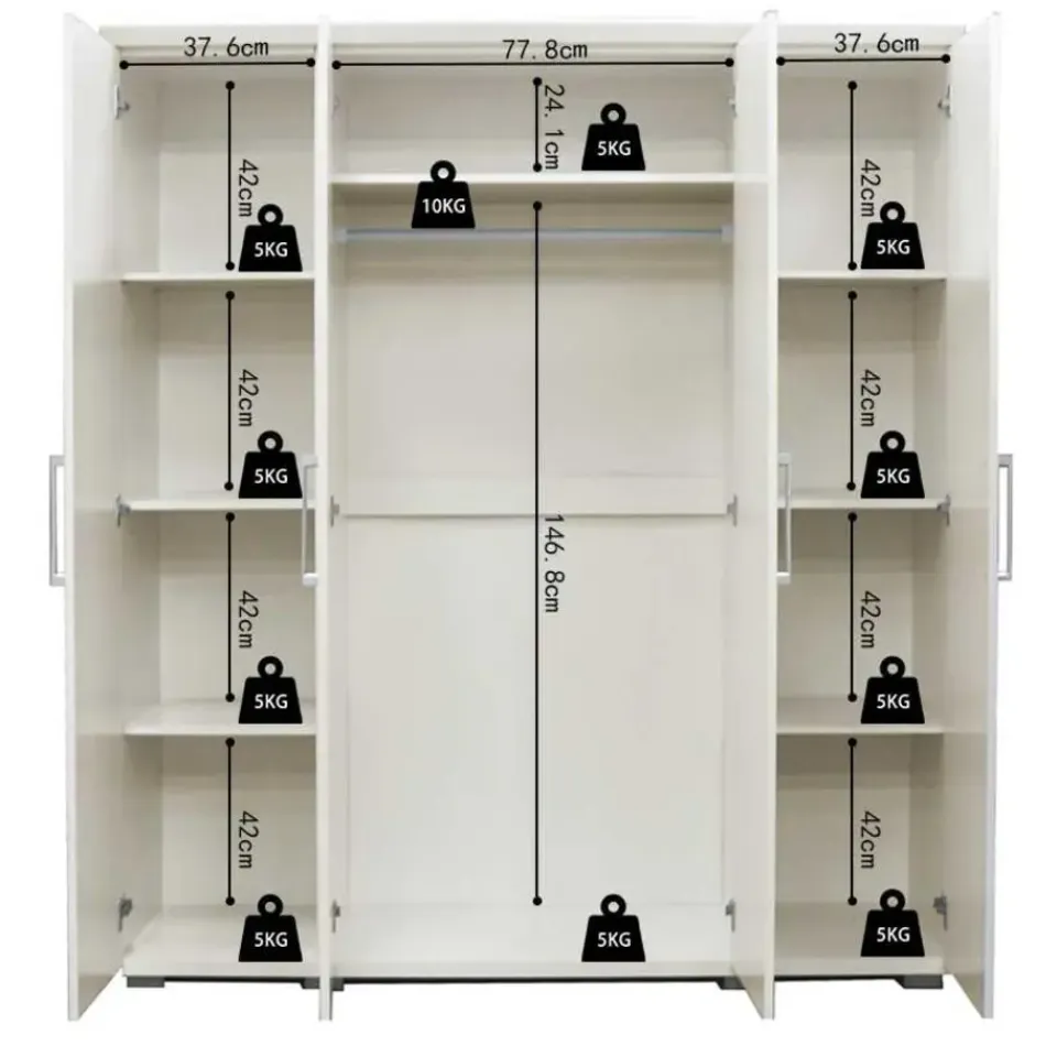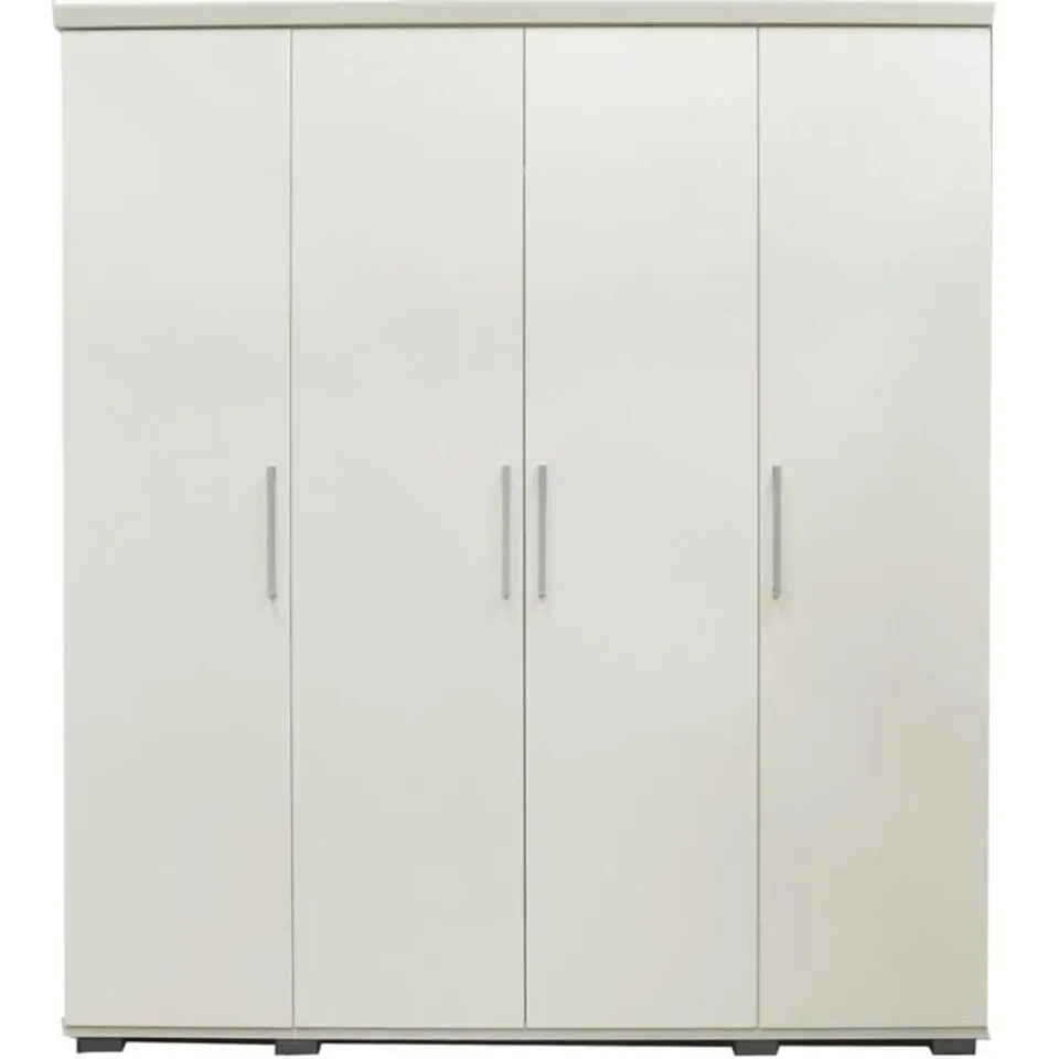 De kledingkast is ontworpen met jouw gemak in gedachten. Hij heeft vier deuren die soepel opengaan, zodat je gemakkelijk bij je spullen kunt. Het interieur is doordacht ontworpen met ophangstangen en planken, zodat je je kleding, schoenen en accessoires netjes kunt ordenen.