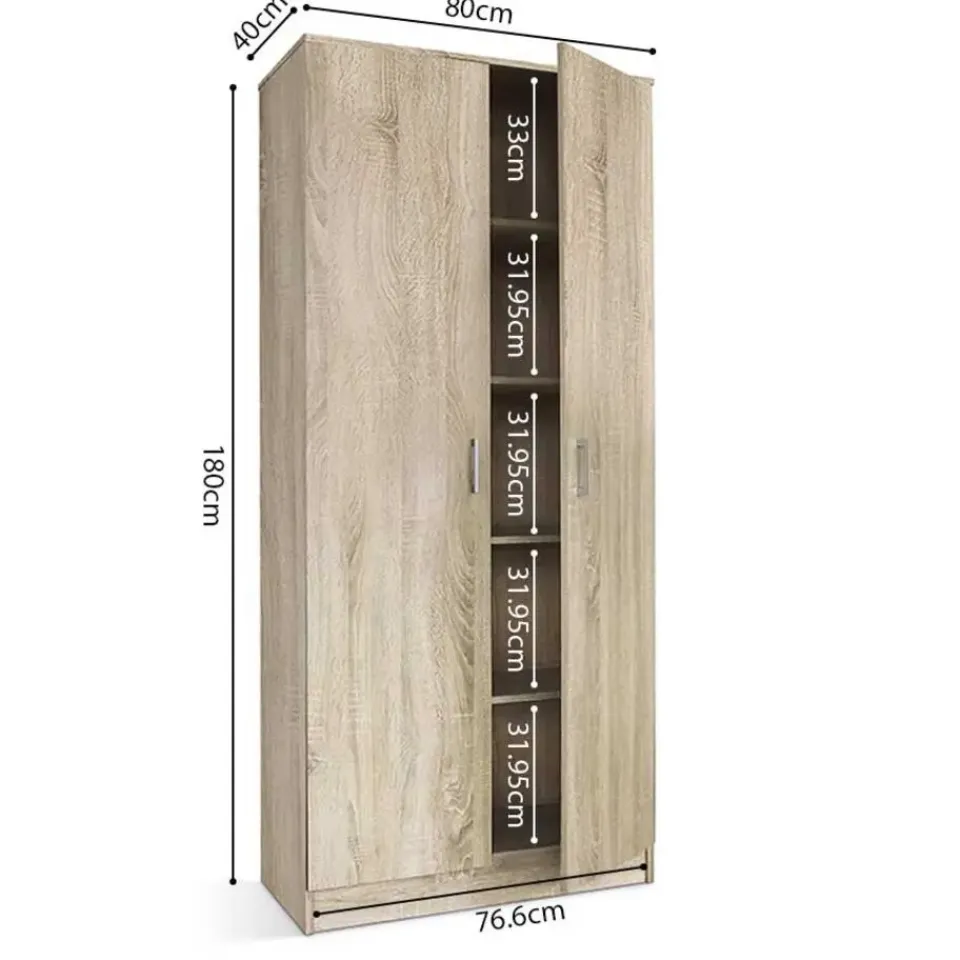 Rangeerkast ‘Ray’ 2 Deuren en 4 Legplanken Sonoma (180x80x40cm)
