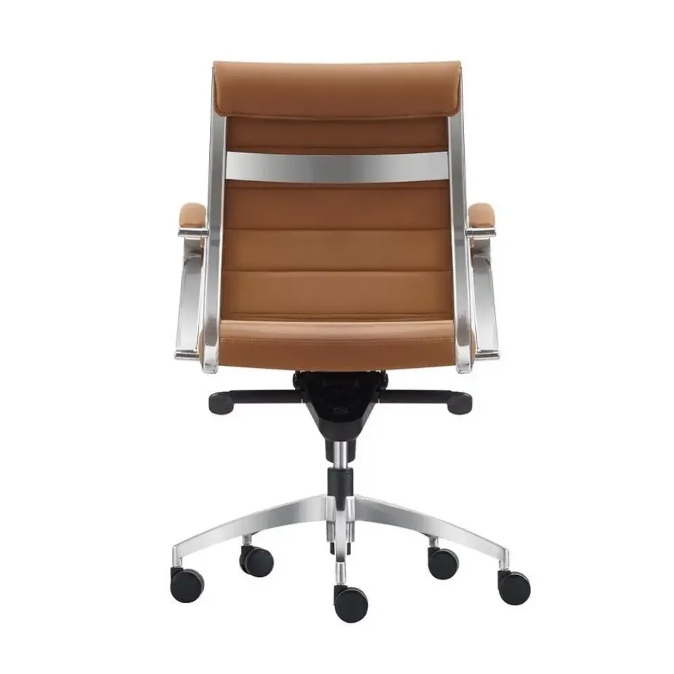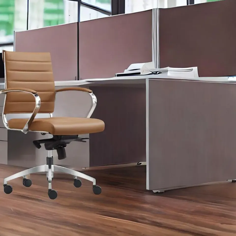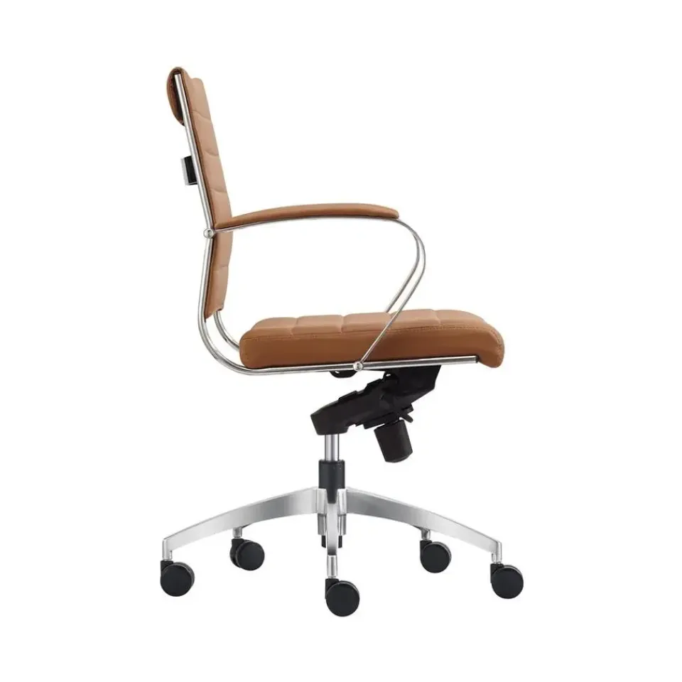 De Cádiz kantoorstoel heeft een chique uitstraling door het gebruik van luxe materialen. De zitting en rugleuning zijn bekleed met hoge kwaliteit echt leder*. Dit zorgt ervoor dat je jarenlang plezier van je stoel hebt. Daarnaast is het frame van de stoel volledig chroomkleurig, evenals de armleuningen en de stervoet, wat zorgt voor een elegante uitstraling.