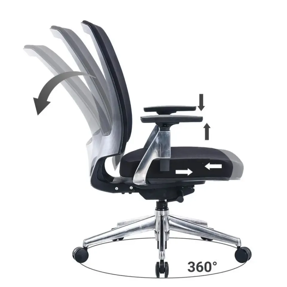 De ergonomische bureaustoel Montana heeft een zwarte kleur en een aluminium onderstel. Dit zorgt voor een moderne uitstraling van de stoel. Dankzij de wieltjes is de bureaustoel gemakkelijk te verplaatsen. Tot slot kun je de zitdiepte van de stoel verstellen. De bureaustoel Montana is 360° draaibaar en geschikt voor een werkplek voor op kantoor of thuis.