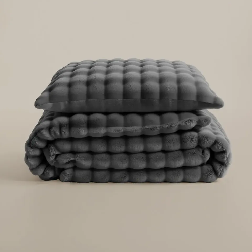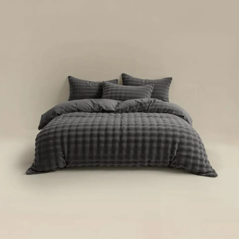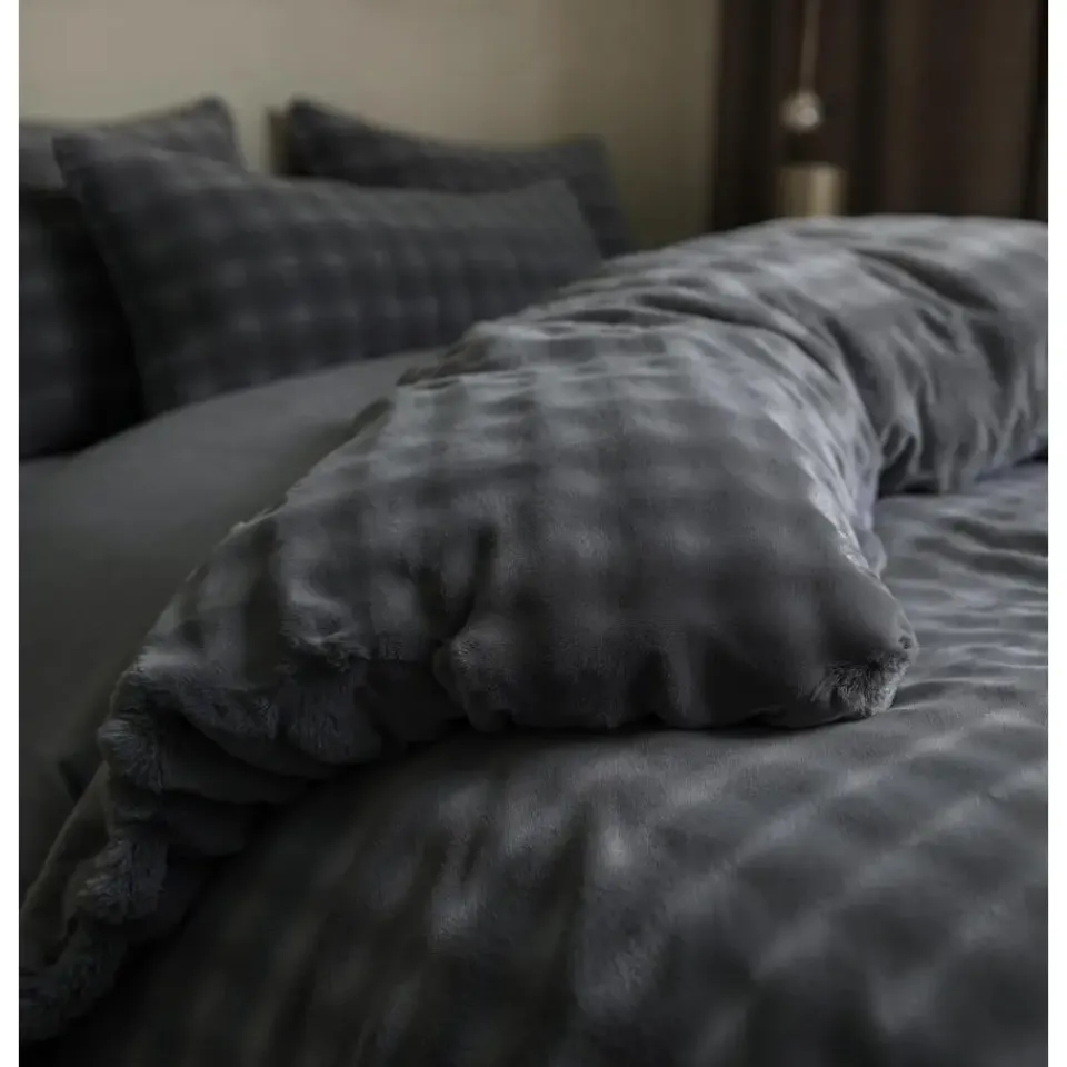 Heerlijk zacht dekbedovertrek van pompom flanel fleece met luxe uitstraling. Warm, ademend, anti-allergisch en strijkvrij – ideaal voor koude nachten en een stijlvolle slaapkamer.