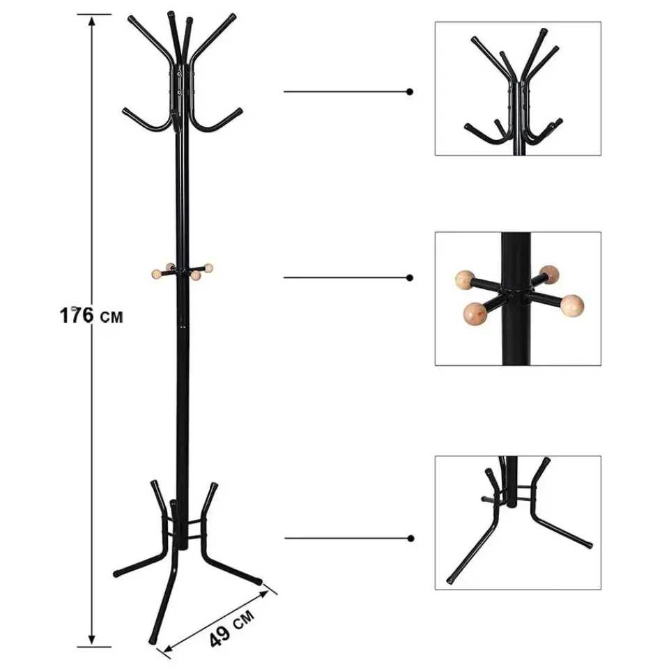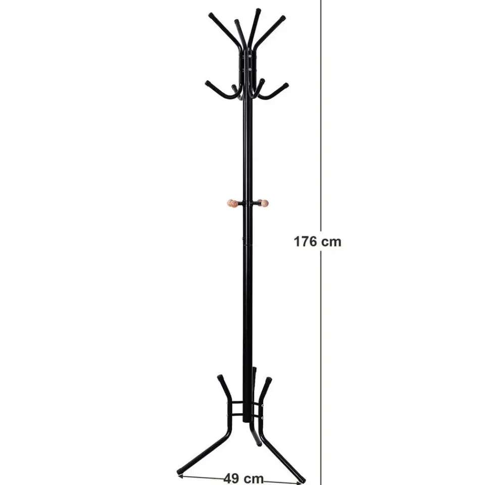 Met deze Zwarte Vrijstaande Kapstok met 12 Haken – H178 cm, behoren rondslingerende kledingstukken in huis tot het verleden! Het heeft een goede afwerking: gelakte, waterdichte en roestwerende oppervlakte, gemakkelijk schoon te maken. Gewoon afvegen met een doek. Zijn zwarte kleur past perfect bij elk interieur. Productkenmerken: Kleur: Zwart Materiaal: Staal Afwerking: Glanzend 12 haken, Hoogte 178 cm Productafmetingen: Lengte 49 cm x Breedte 49 cm x Hoogte 178 cm – Nettogewicht: 2,5 kg Verpakkingsafmetingen: Lengte 80 cm x Hoogte 29 cm x Breedte 5,7 cm – Brutogewicht: 2,9 kg