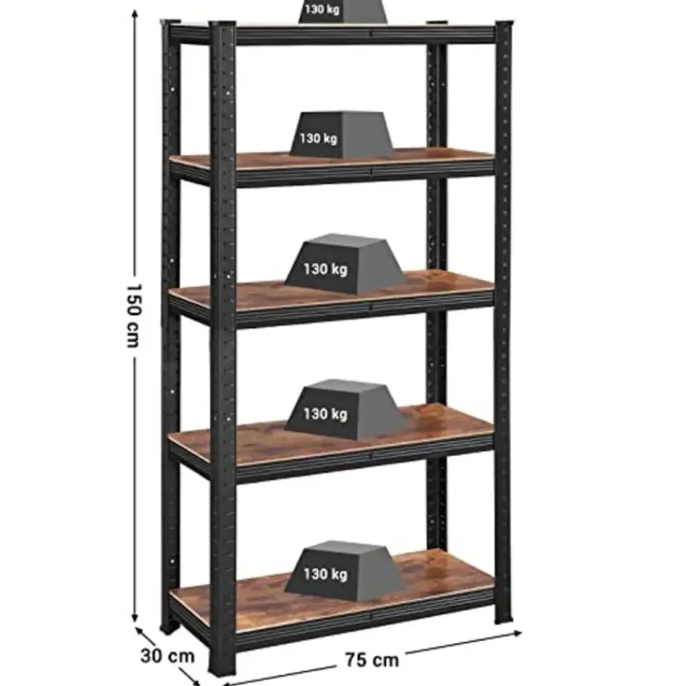 Dit prachtige rek zal je opslagruimte naar een hoger niveau tillen, zodat je met een gerust hart een groot aantal items kunt opbergen! De rekken hebben een royale afmeting van 150 x 75 x 30 cm en zijn gemaakt van stevige planken van spaanplaat die worden ondersteund door stalen frames en verstevigd met extra stangen. Elke plank kan tot 130 kg dragen en biedt veilige ondersteuning voor verf, gereedschap en fitnessapparatuur. Deze geweldige opbergoplossing kan worden verdeeld in twee aparte eenheden: een in de keuken, ideaal voor oven en magnetron, en een in de studeerkamer voor boeken, planten, printers en meer. De montage van het meubel is een fluitje van een cent, er is geen gereedschap voor nodig. Dankzij de insteekverbindingen en verstelbare planken is de kast eenvoudig te configureren. Er wordt een anti-kantelkit meegeleverd waarmee je de plank aan de muur kunt bevestigen voor meer stabiliteit en veiligheid. Met deze schappenkast creëer je eenvoudig de perfecte opbergoplossing voor de woonkamer, keuken, garage of waar dan ook in huis.