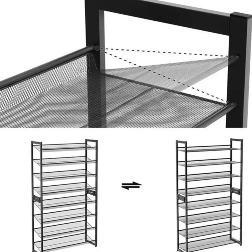 Met dit metalen rek heb je een goede oplossing voor rondslingerende schoenen in je hal. Het heeft maar liefst 8 roosters, waarop je elk 4 tot 5 paar schoenen kwijt kunt, dus in totaal 32 tot 40 paar schoenen.