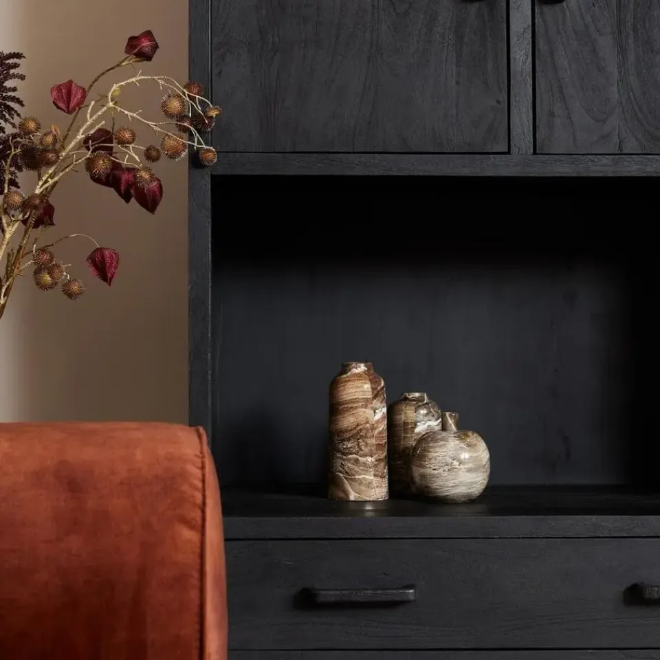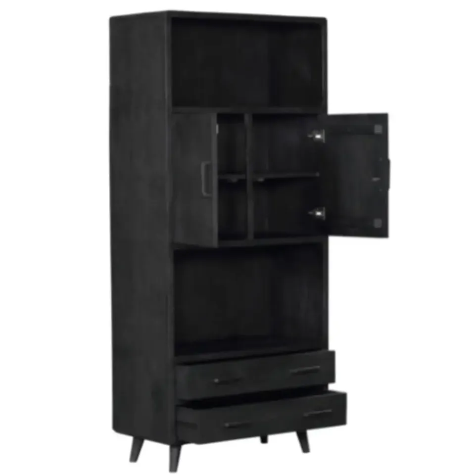 De Boekenkast Omaha Black van Starfurn is een stijlvolle en functionele toevoeging aan elke woonkamer. Dit meubelstuk is volledig uitgevoerd in mangohout en kenmerkt zich door een unieke combinatie van design en functionaliteit.