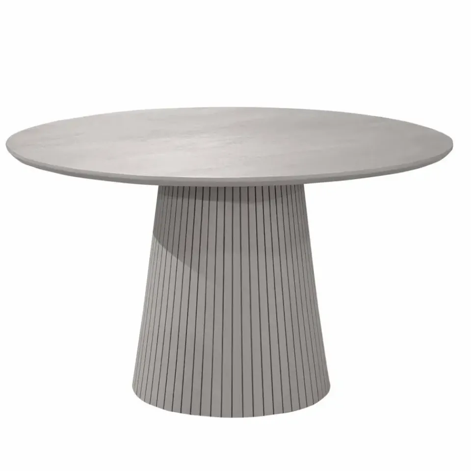 Eettafel Solana is een stijlvol en tijdloos item, gemaakt van mangohout in een taupe finish. Het ronde blad en de poot met verticaal lattenpatroon geven een moderne uitstraling. De eettafel is perfect te combineren met andere items uit de Solana serie.