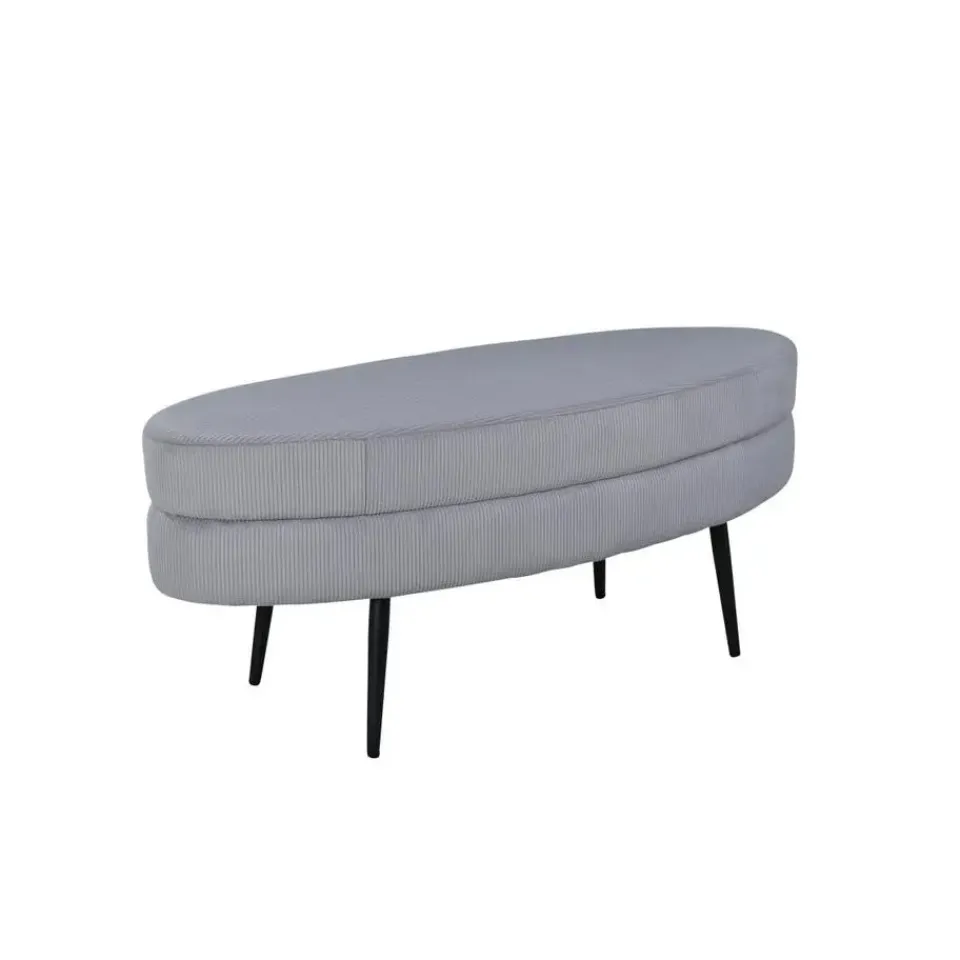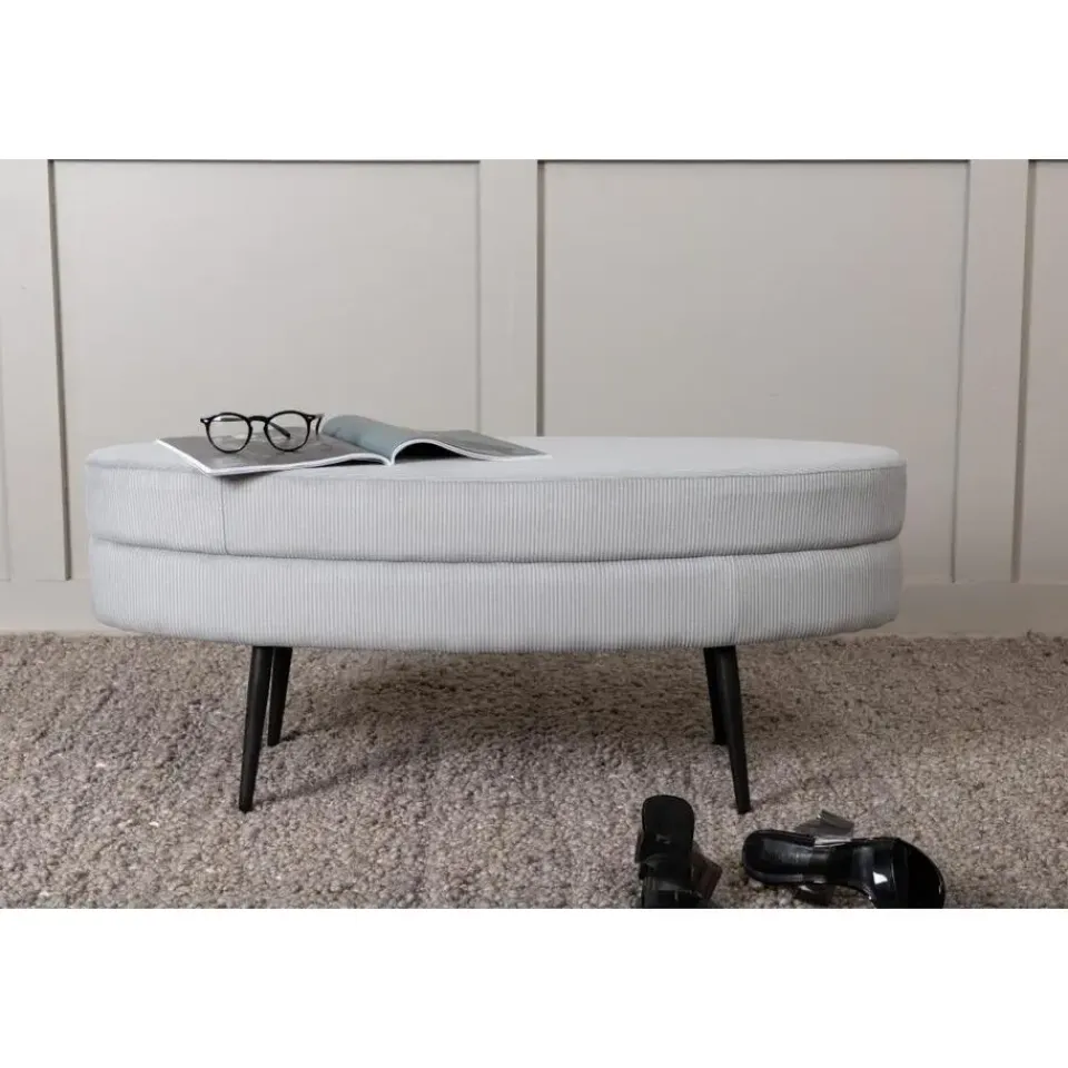 Laat modern design de nostalgie van de jaren ’50 ontmoeten met deze trendy Axel hocker – rib – grijs! Gekleed in lichtgrijze fluwelen stof, geeft de zitpoef een moderne uitstraling aan de woonkamer. Het ovale maar tegelijkertijd zachte ontwerp en de smalle, uitlopende poten van zwart staal creëren een luchtig en uitnodigend gevoel. Een ongelooflijk doordacht totaalontwerp dat het mogelijk maakt om het meubel zowel solitair als naast een bankgroep te plaatsen. Gemaakt van grijze kleur en de materialen schuim, katoenvezel, stof, gebogen hout en staal. Afmetingen van de poef: Lengte: 100 cm, breedte: 40 cm, hoogte: 41 cm.