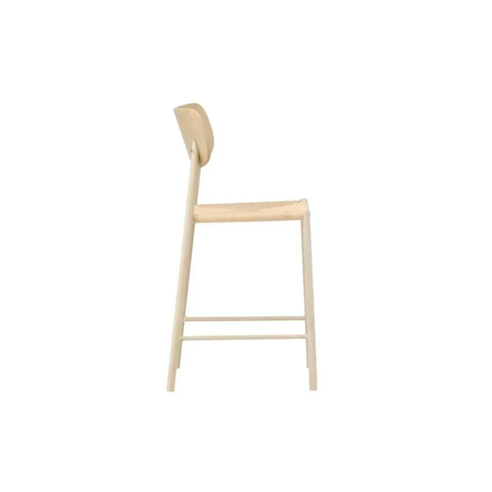De Polsty barkruk met rugleuning – rattan verkrijgbaar in de kleuren zwart en whitewash geeft je keuken eiland of thuisbar een verfijnde en moderne uitstraling. Deze barkruk combineert op elegante wijze zwart metaal met een zitting van natuurlijk gekleurd touw. Polly is ontworpen om zowel comfort als stijl te bieden, waardoor het een perfecte aanvulling is op je interieur.