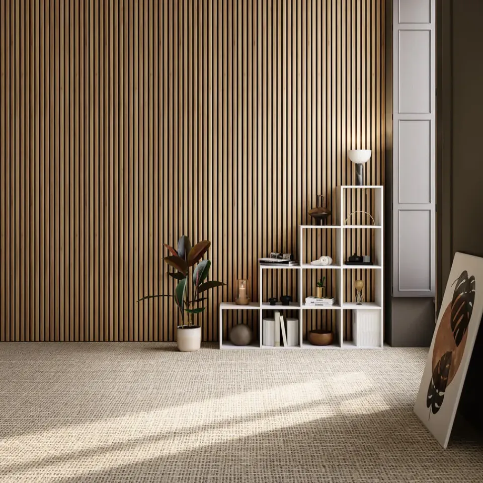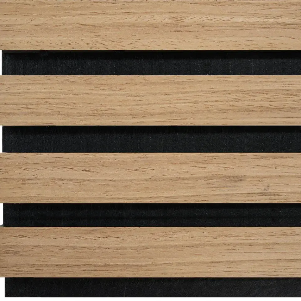 - Uitstekende geluidsabsorptie door combinatie van viltstof en houten lamellen