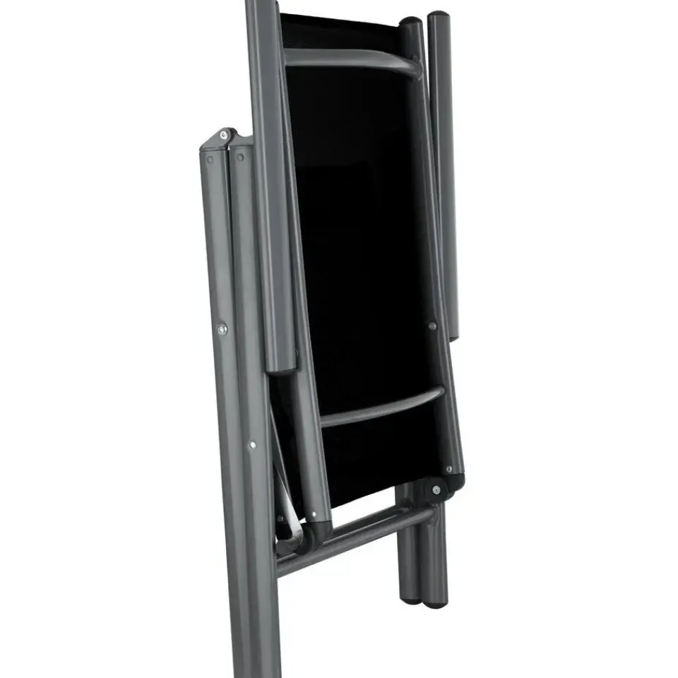 - Materiaal: gepoedercoat aluminium frame, polyestervezel, kunststof