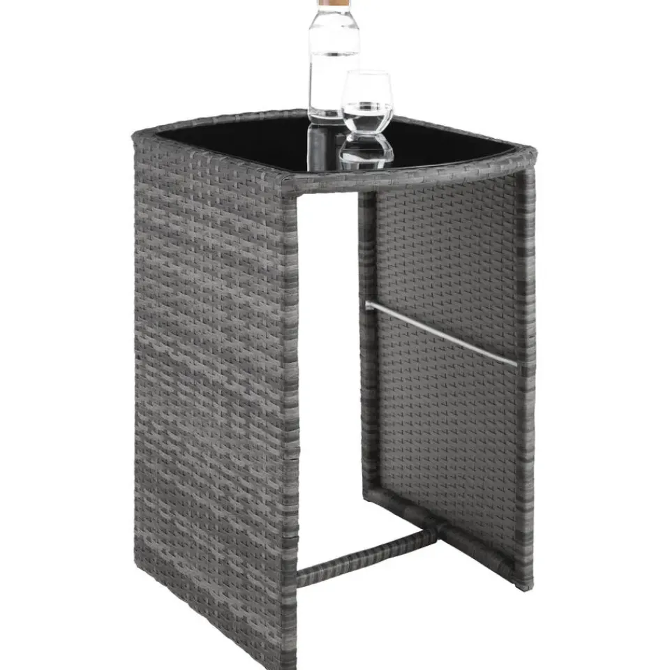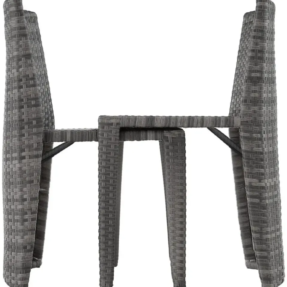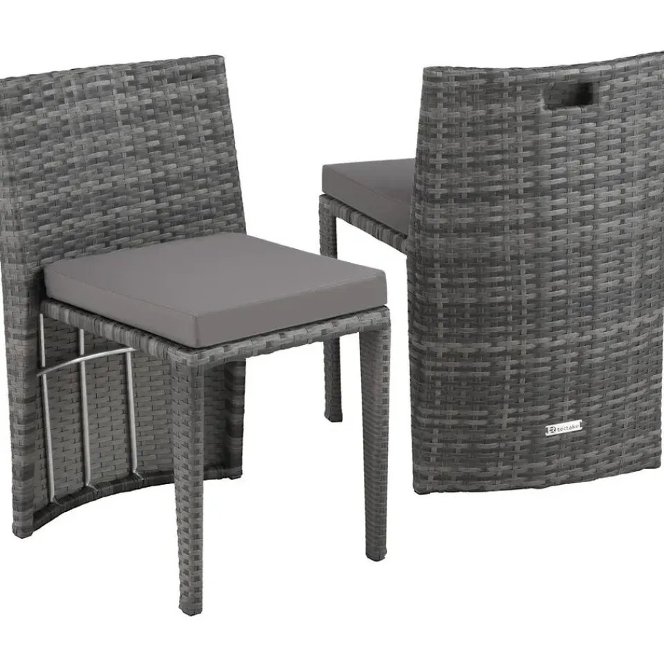 Deze sierlijke wickerset is ideaal geschikt voor hapjes en drankjes, om lekker te ontspannen en voor gezellige gesprekken in de buitenlucht. De tafel en de beide stoelen met de comfortabele en waterafstotende zitkussens worden klaar gemonteerd geleverd. Bij niet-gebruik kan de geraffineerde wickergroep plaatsbesparend samengeschoven worden. Het fijne vlechtwerk van duurzaam wicker en het stabiele frame van aluminium maken deze roestvrije set tot de perfecte buitenset. Klein, licht en knus: de uitnodigende wickerset combineert doordacht ontwerp met veel gezelligheid. Let op: Montage vereist