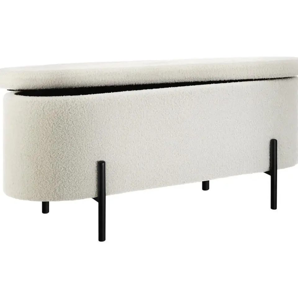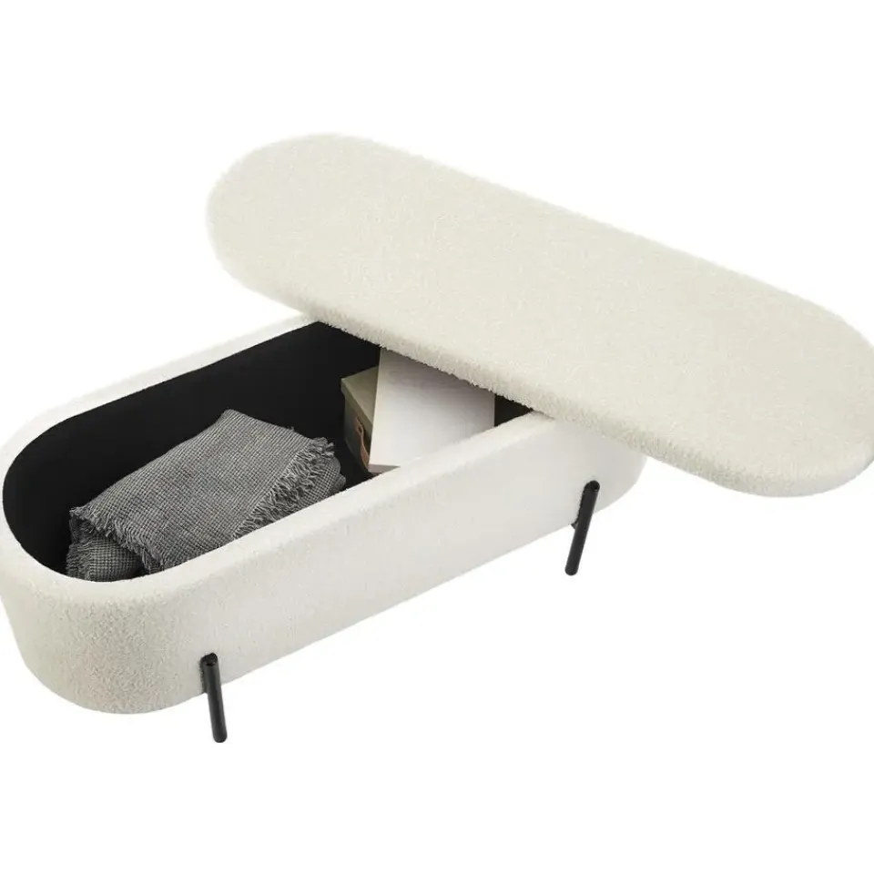 - Gezellige bank met opbergruimte met bouclé-stof in knusse scandi-stijl