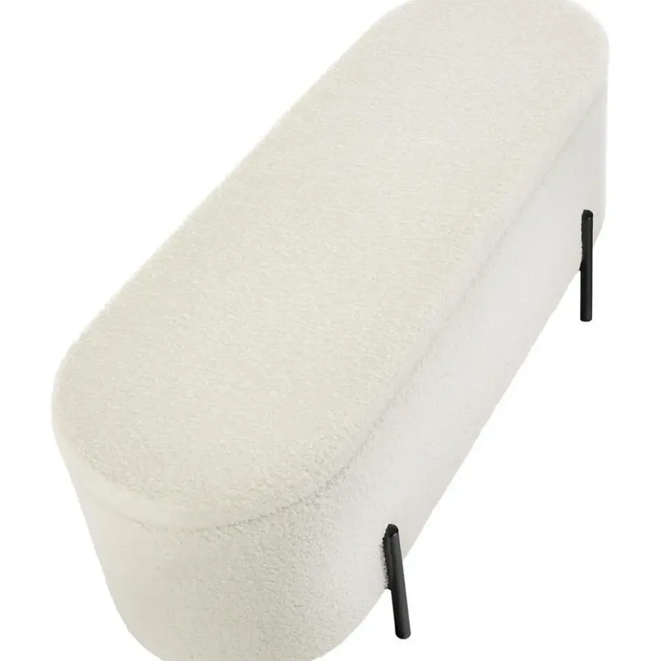De zitbank imponeert zowel door haar elegante uiterlijk als door de comfortabele bekleding met hoogdichte schuimvulling. De zachte bouclé-stof draagt niet alleen bij aan het comfortabele zitgevoel en nodigt uit om te blijven zitten, maar is bovendien ook zeer onderhoudsvriendelijk.