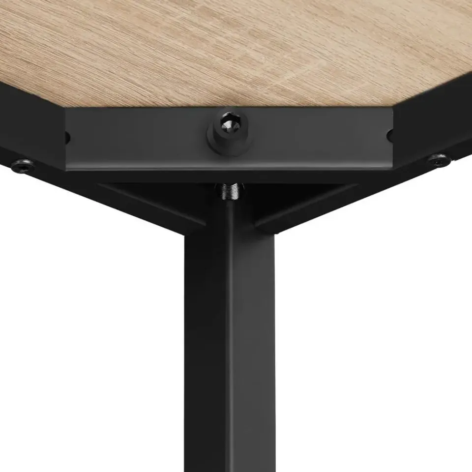 Creëer met het moderne bureau Flint de beste voorwaarden voor succesvol en efficiënt werken. Het veerkrachtige werkblad in warme houtlook wordt ondersteund door een gepoedercoat stalen frame in koel zwart. De fijne nerf geeft het verder sobere kantoormeubilair in industriële stijl net dat beetje extra. Vier schroefpoten garanderen altijd een hoge mate van stabiliteit, ook als de vloer niet altijd even vlak is. Met dit hippe bureau Flint kun je je goed focussen op je werk – thuis of op kantoor. Let op: Montage vereist