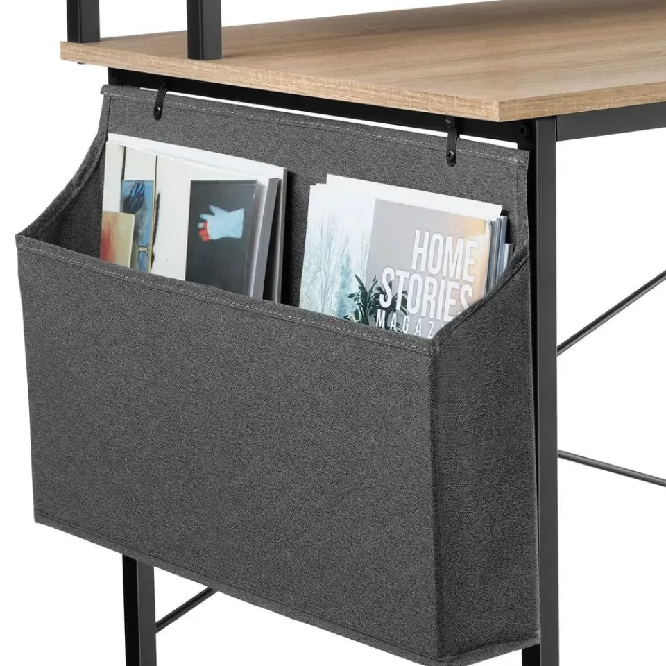 Geef je creativiteit en productiviteit een nieuwe boost met dit functionele bureau. Heldere lijnen en de contrastrijke combinatie van warm hout en koel metaal resulteren in de typische uitstraling van de populaire, neutrale industriële stijl. Een scherm kan perfect op de praktische plank worden geplaatst, terwijl het stoffen vak aan de zijkant veel opbergruimte biedt voor ordners en documenten. Het gepoedercoate frame, de x-vormige steunen en de vloerbeschermende schroefpoten garanderen een hoge stevigheid en uitstekende stabiliteit – de eerste keuze voor geconcentreerd werken in je thuiskantoor. Let op: Montage vereist