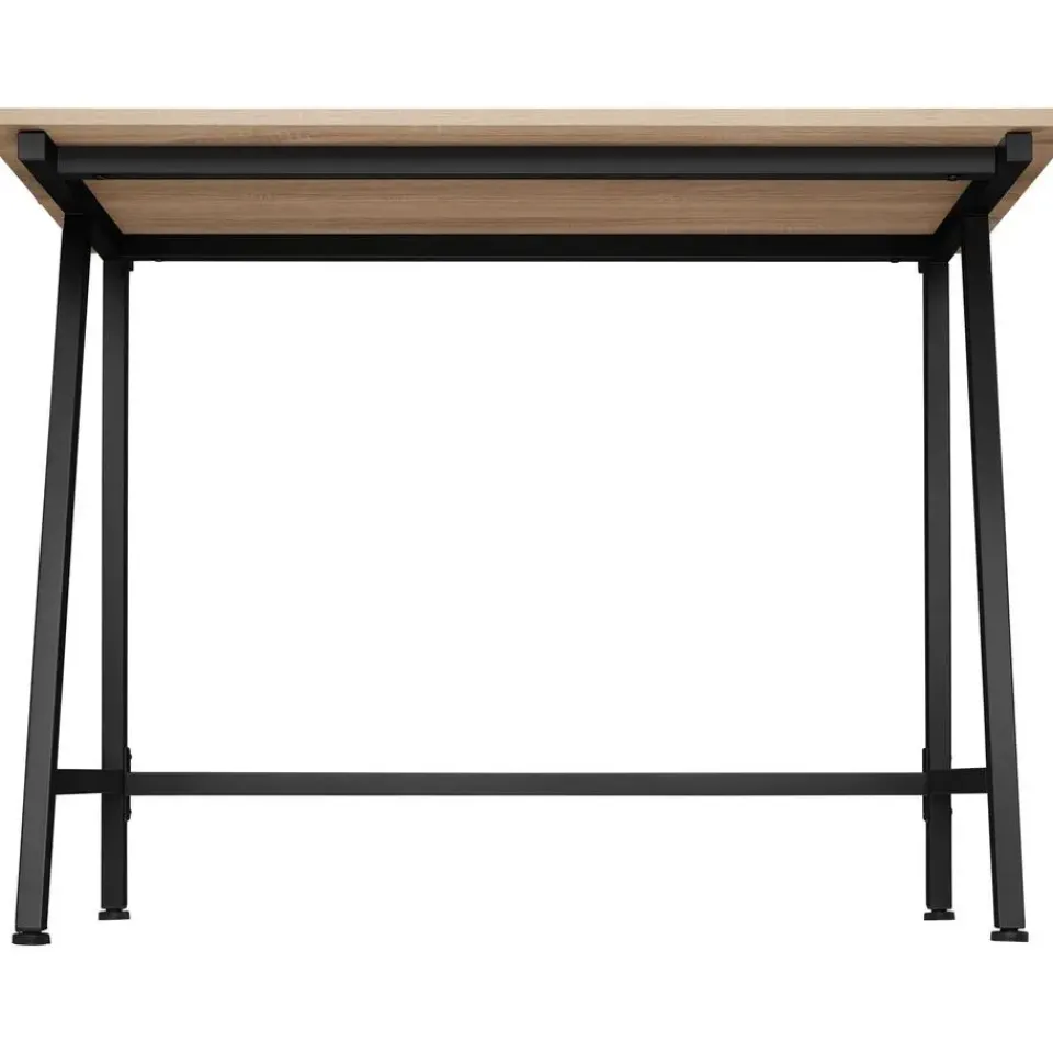 Een spannend contrast tussen warm hout en koel staal kenmerken het stijlvolle bureau Newton. Dankzij zijn kleine afmetingen en zijn karaktervolle maar subtiele uitstraling in de typische industriële stijl past het veelzijdige meubelstuk in elke omgeving. De twee verticale en twee schuine poten geven het stabiele frame een modern en mooi design. Voor een uitstekende stabiliteit kunnen de in hoogte verstelbare kunststof poten exact aan de vloer worden aangepast – haal het beste uit je thuiskantoor met het hippe bureau Newton. Let op: Montage vereist