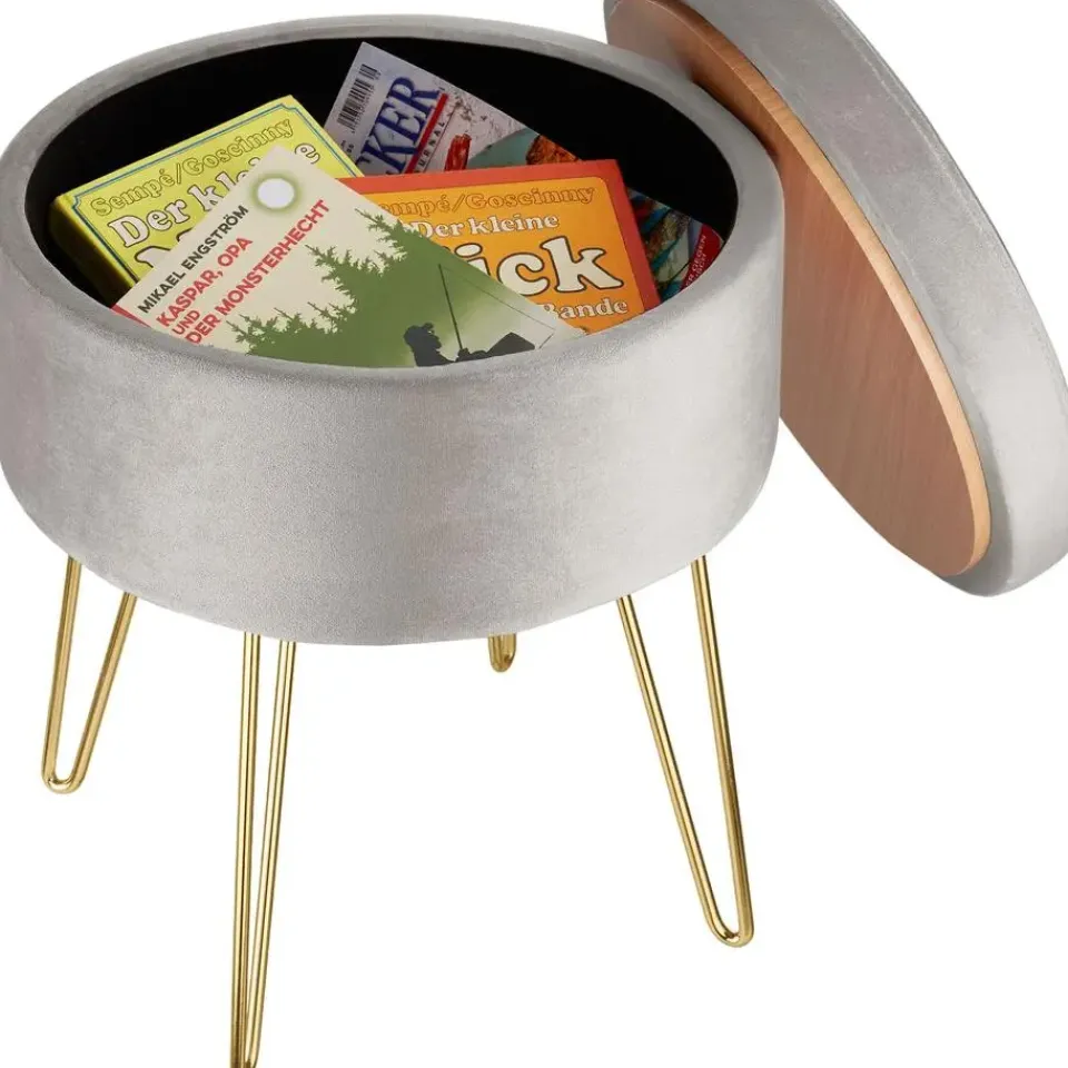 Met de hocker Ava met opbergruimte heb je zeker een eyecatcher die meerdere voordelen combineert. De mooie bekleding en het velours oppervlak maken dit nette meubelstuk tot een echt juweeltje. Ondanks de filigrane uitstraling scoort de doordachte constructie met praktische eigenschappen zoals een hoog draagvermogen en een geïntegreerd opbergvak. Dankzij het aantrekkelijke uiterlijk kan de stijlvolle ronde kruk overal worden gebruikt – of het nu voor de kaptafel in de slaapkamer is of als extra krukje in de woonkamer. Let op: Montage vereist