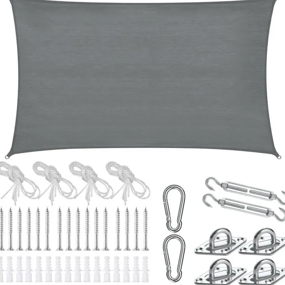 De ademende stof van scheurvast HDPE-materiaal biedt niet alleen een effectieve UV-bescherming, maar overtuigt ook door zijn enorme weerstand tegen wind en regen. De roestvrije roestvrijstalen ringen aan de uiteinden zijn stevig ingenaaid en zorgen voor een veilige en stabiele bevestiging. Of het nu aan bomen, palen of andere vaste punten is – dankzij het meegeleverde montagemateriaal van spankoorden, spanschroeven, wandbeugels, karabijnhaken, schroeven en pluggen is de installatie in een handomdraai voltooid.