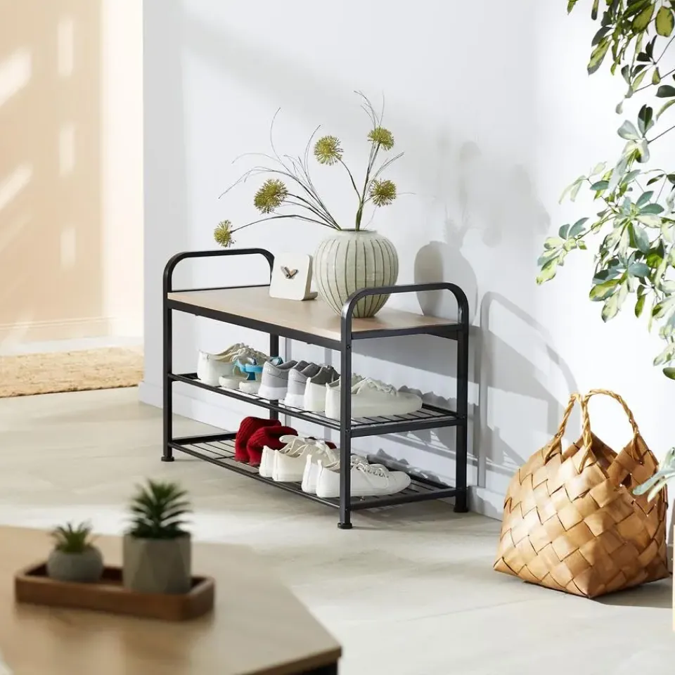 Haal de populaire industriële flair in huis met het aantrekkelijke schoenenrek Southampton. Dankzij het puristische design en de kleine afmetingen is dit rustieke meubel een meester in combineren. Drie open planken bieden veel opbergruimte en een goede veerkracht. Vier in hoogte verstelbare kunststof pootjes garanderen de best mogelijke stabiliteit terwijl ze de vloer beschermen en ronden het totaalbeeld van een praktische organizer in een casual industriële stijl af. Let op: Montage vereist