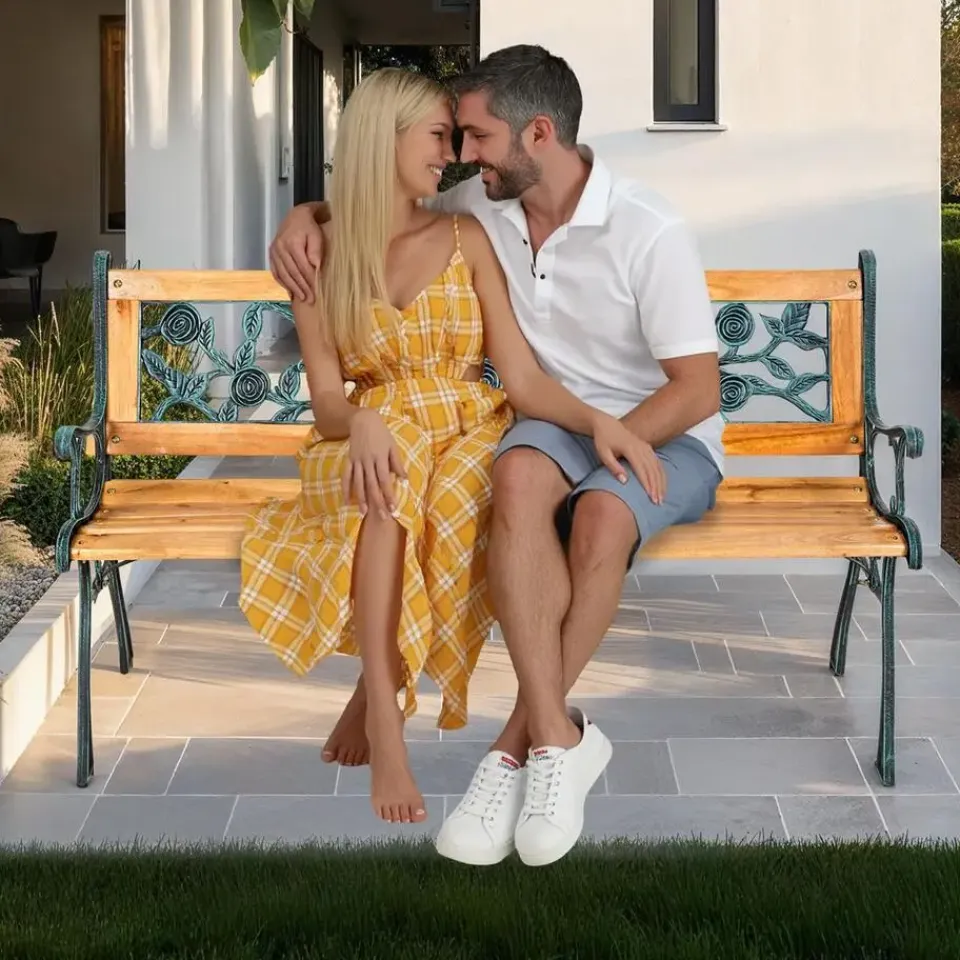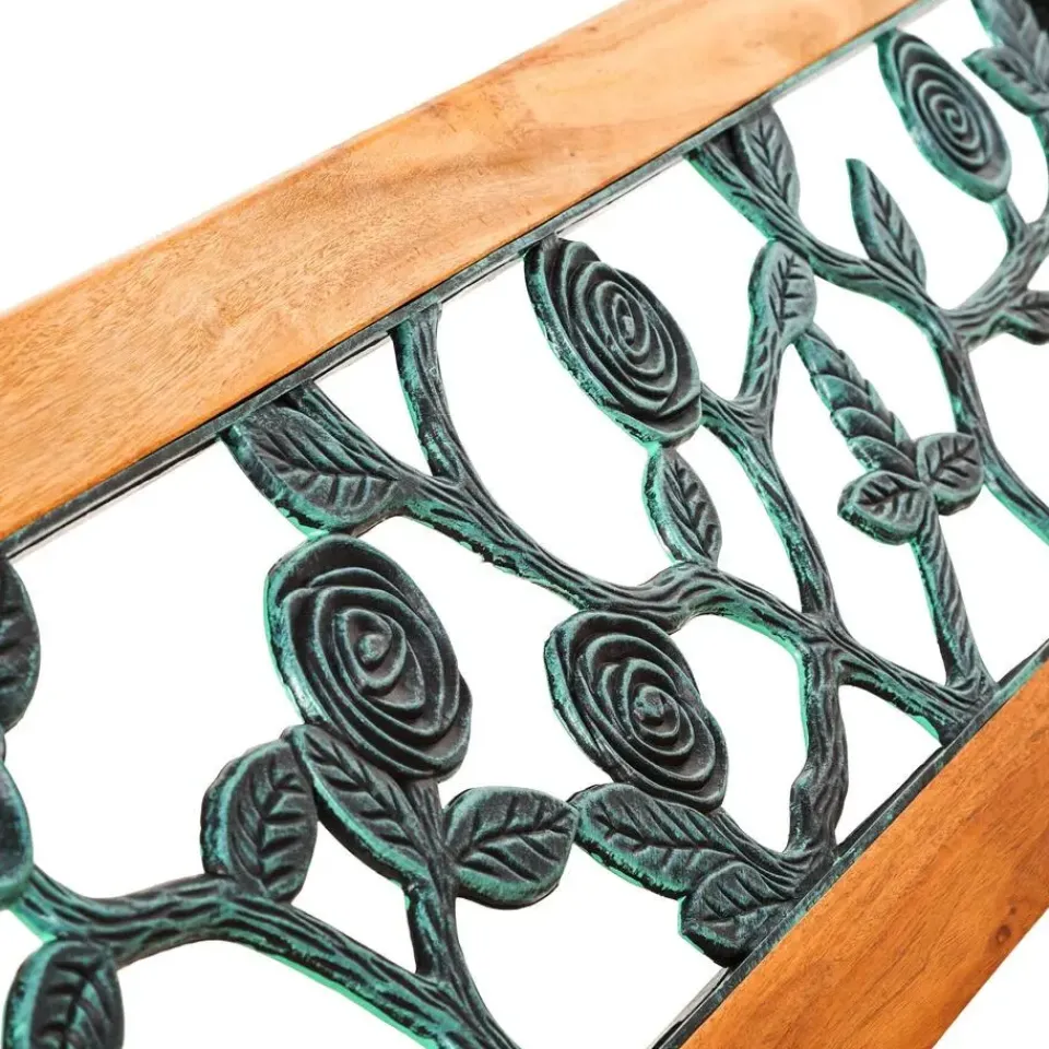 Deze mooie gietijzeren tuinbank tovert je tuin om in een echte oase van welzijn. Met haar nostalgisch ontwerp en de mooie afwerking uit gietijzer en gelakt hout is onze bank een echte blikvanger en integreert ze zich perfect in de plantenwereld in je tuin.