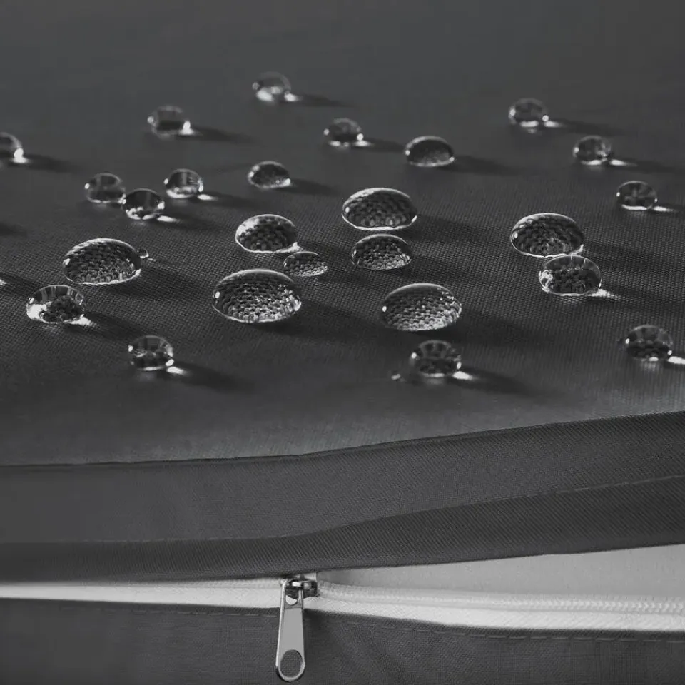 Om de onderhoudsvriendelijke set veilig op te bergen, schuif je de afzonderlijke elementen bij elkaar en trek je de meegeleverde hoes eroverheen. Zo bescherm je de meubels na gebruik op het terras tegen vuil van bladeren, dieren en andere invloeden, en bewaar je ze in de garage of kelder tijdens de winter tegen stof.