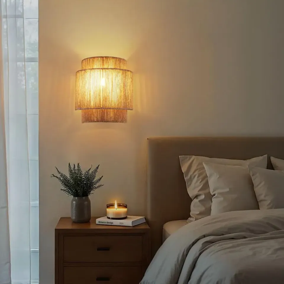 - Kunstzinnige wandlamp met 3-laagse lampenkap in chique boho-stijl