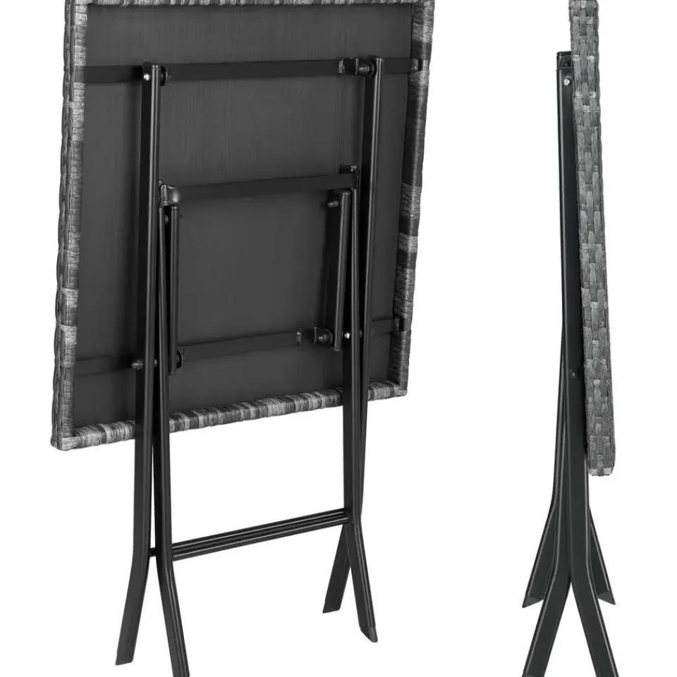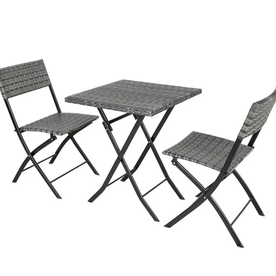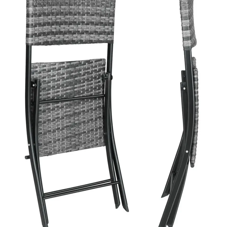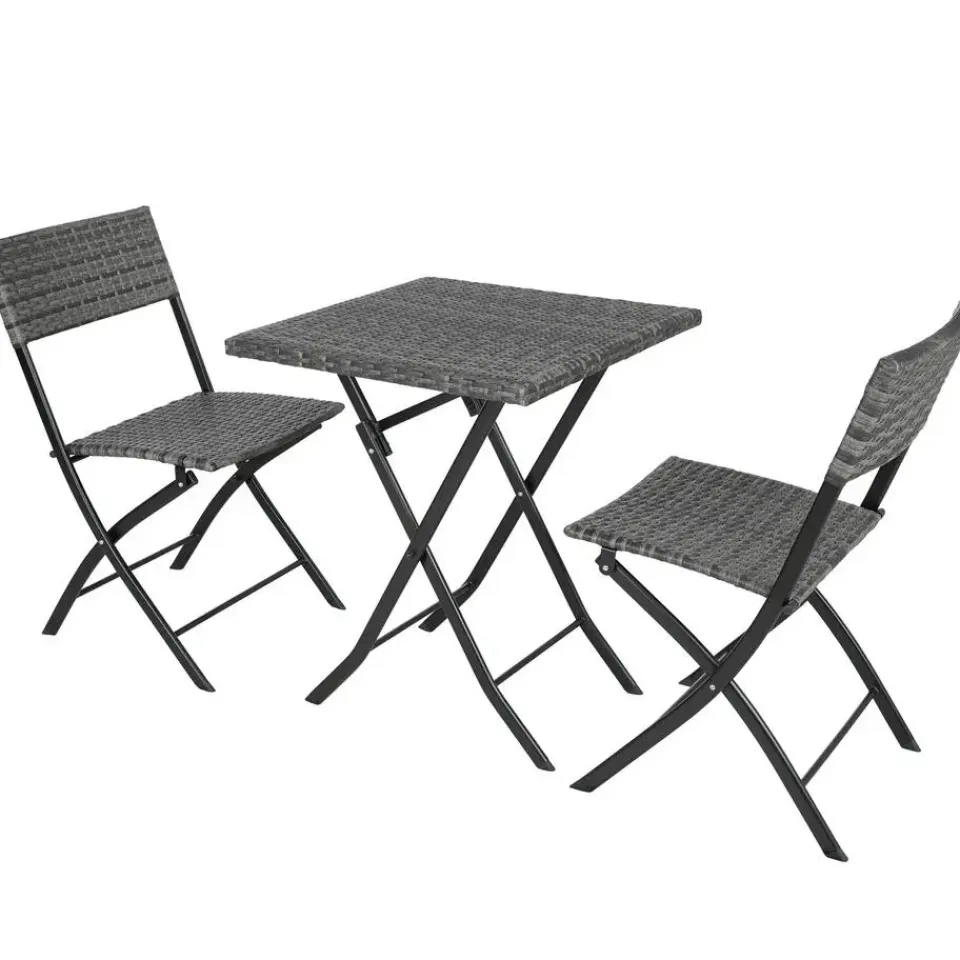Deze driedelige wicker set van tectake overtuigt met een chique look, hoge flexibiliteit en veel gezelligheid. De compacte zitgarnituur is ideaal geschikt voor kleine balkons, terrassen of nissen. Indien niet in gebruik, kunnen de afzonderlijke elementen ruimtebesparend gevouwen worden. De tafel alsook de beide stoelen van gepoedercoat staal en het fijne vlechtwerk van duurzaam wicker worden klaar gemonteerd geleverd. De combinatie van robuust frame en laag gewicht maken deze onderhoudsvriendelijke wickerset van tectake perfect voor transport en de camping. Let op: Montage vereist