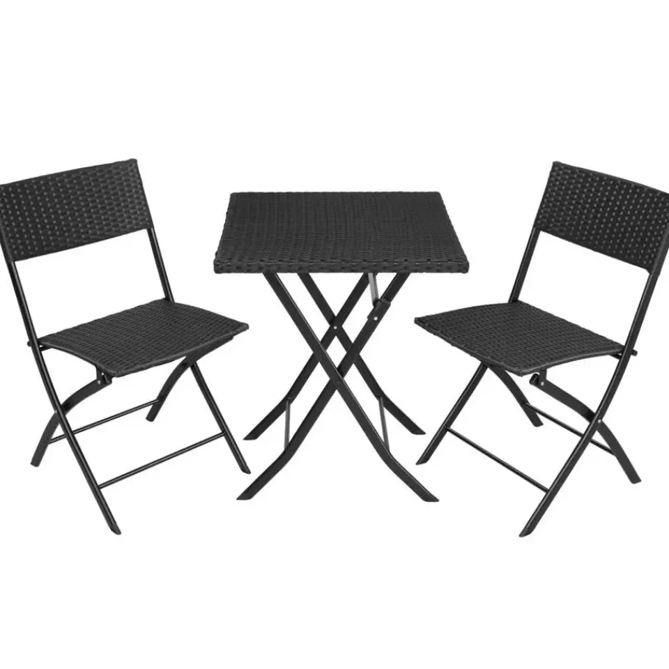 Deze driedelige wicker set van tectake overtuigt met een chique look, hoge flexibiliteit en veel gezelligheid. De compacte zitgarnituur is ideaal geschikt voor kleine balkons, terrassen of nissen. Indien niet in gebruik, kunnen de afzonderlijke elementen ruimtebesparend gevouwen worden. De tafel alsook de beide stoelen van gepoedercoat staal en het fijne vlechtwerk van duurzaam wicker worden klaar gemonteerd geleverd. De combinatie van robuust frame en laag gewicht maken deze onderhoudsvriendelijke wickerset van tectake perfect voor transport en de camping. Let op: Montage vereist