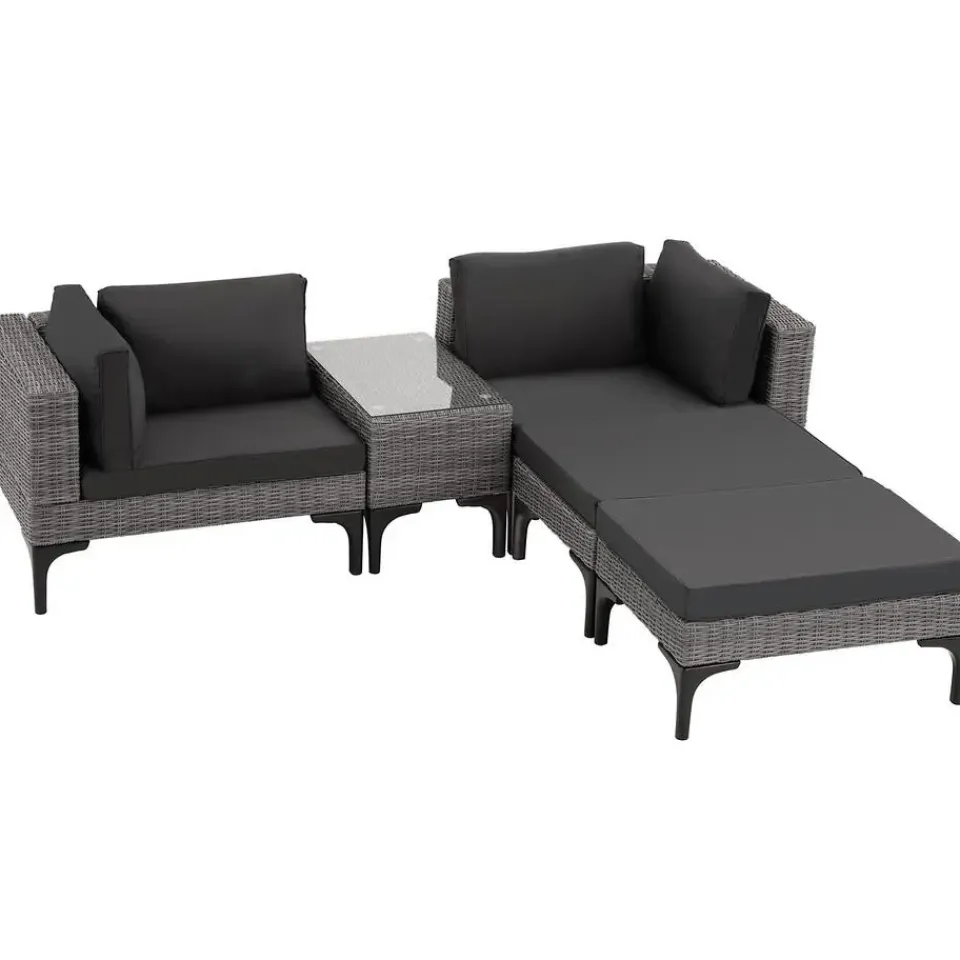 - Comfortabele vijfdelige wicker loungeset met dikke vulling
