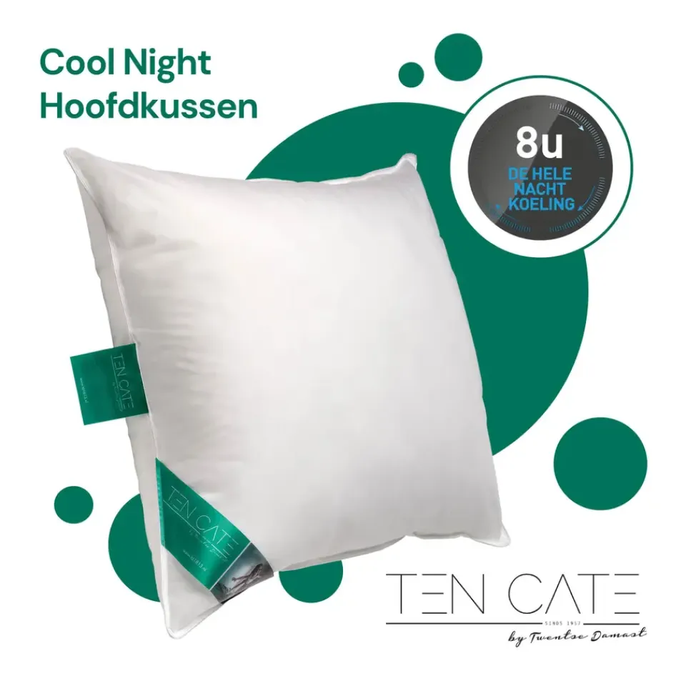 Het Ten Cate Cool Night Hoofdkussen is het perfect kussen voor de warme zomermaanden of voor mensen die het gewoon snel te warm hebben. Door de unieke Aerelle® Cool Night Vezelbolletjes houdt u met die kussen letterlijk het hoofd koel. Dit kussen is geschikt voor ieder type slaper, of je nu een buik-, rug- of zijslaper bent, het Cool Night hoofdkussen past zich perfect aan jouw slaaphouding aan.