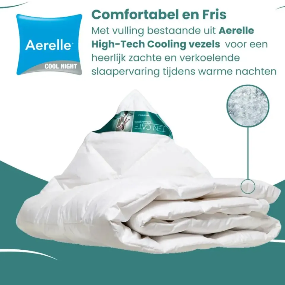 Het Ten Cate Cool Night zomerdekbed is een zeer comfortabel dekbed voor de warme zomernachten. Het dekbed is gevuld met hoogwaardige Cool Night vezels welke overtollgie warmte afvoeren. De tijk is van een luxe 100% perkal katoen en is daardoor goed vochtregulerend.