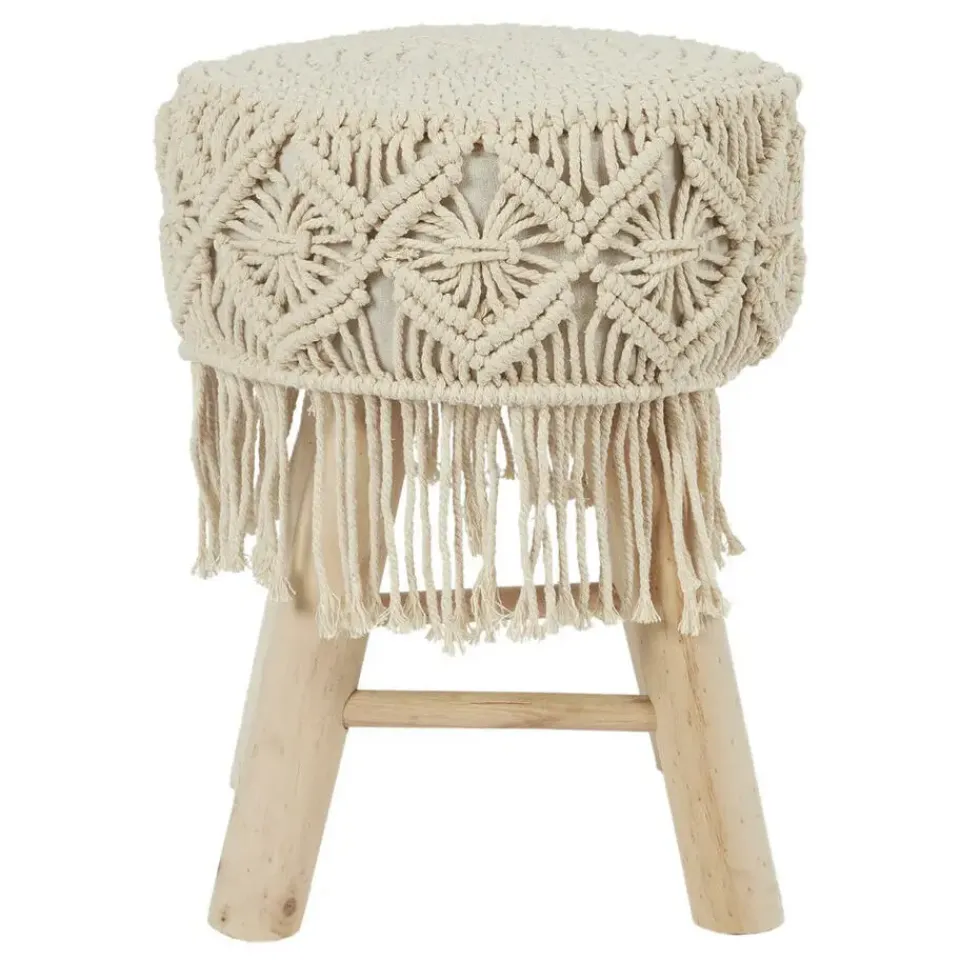Het Macrame bijzetkrukje is een stijlvolle en praktische toevoeging voor ieder interieur.