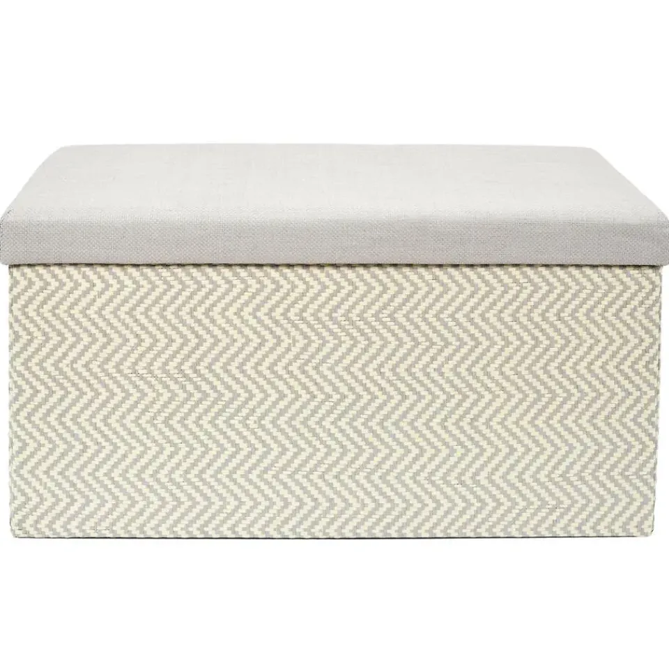 Home Deco poef Fishbone heeft een fijne opbergruimte waar je ook op kunt zitten. Deze opvouwbare poef, ook wel een hocker genoemd is ideaal voor elk huishouden. De poef heeft een afneembare deksel, geeft je extra opbergruimte en is tevens te gebruiken als voetenbankje. Bespaar ruimte door bijvoorbeeld speelgoed of dekens erin op te bergen of de poef als zitplek te gebruiken. Een mooie aanvulling voor in huis. Kleur: beige/lichtgrijs. Materiaal: polyester en mdf. Afmeting: ca. 76 x 38 cm.