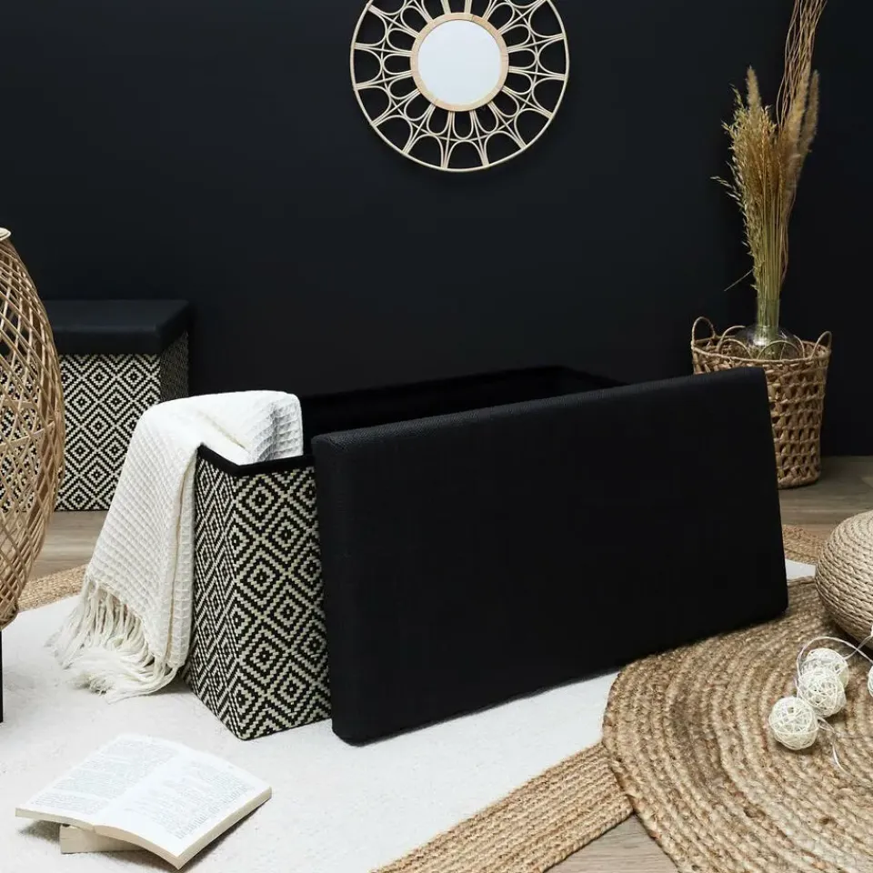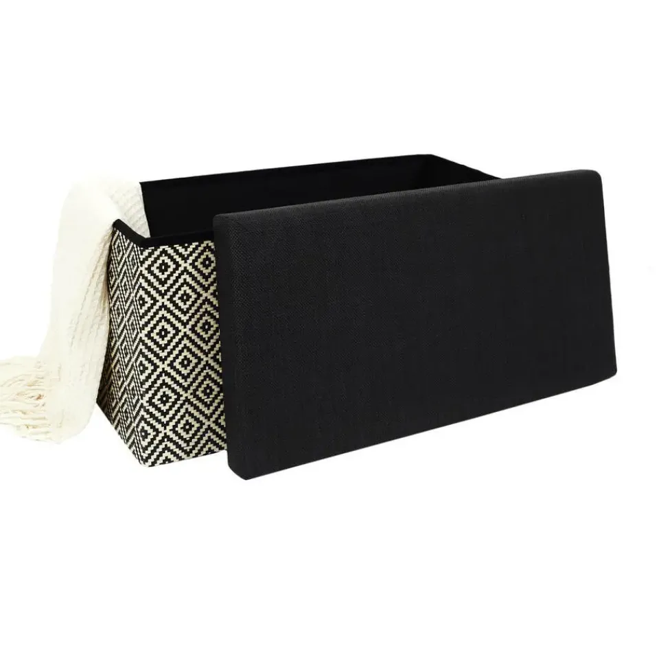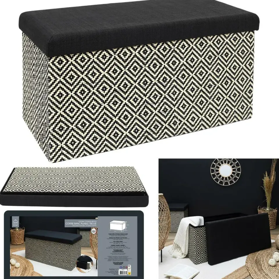 Home Deco Factory poefje Braided met opbergruimte waar je ook op kunt zitten. Deze opvouwbare poef, ook wel een hocker genoemd is ideaal voor elk huishouden. De poef heeft een afneembare deksel, geeft je extra opbergruimte en is tevens te gebruiken als voetenbankje. Bespaar ruimte door bijvoorbeeld speelgoed of dekens erin op te bergen of de poef als zitplek te gebruiken. Een mooie aanvulling voor in huis. Kleur: donkerbruin/zwart. Materiaal: polyester en mdf. Afmeting: ca. 76 x 38 cm.