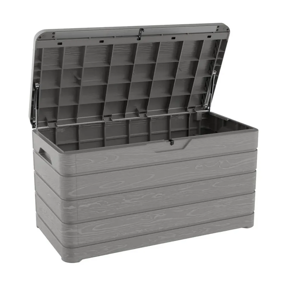 De Toomax Dolomiti opbergbox is de perfecte oplossing voor het opbergen van kussens, tuinaccessoires en andere spullen in je tuin of op je terras. Deze stijlvolle en functionele opbergbox biedt een combinatie van gebruiksgemak, duurzaamheid en een aantrekkelijk ontwerp. Door het grote volume van 410 liter is er genoeg plek voor het opbergen van bijvoorbeeld tuinkussens of verschillende soorten tuingereedschap. De opbergbox beschikt over een hangslotvoorziening zodat je de box volledig kan afsluiten. (hangslot niet meegeleverd).