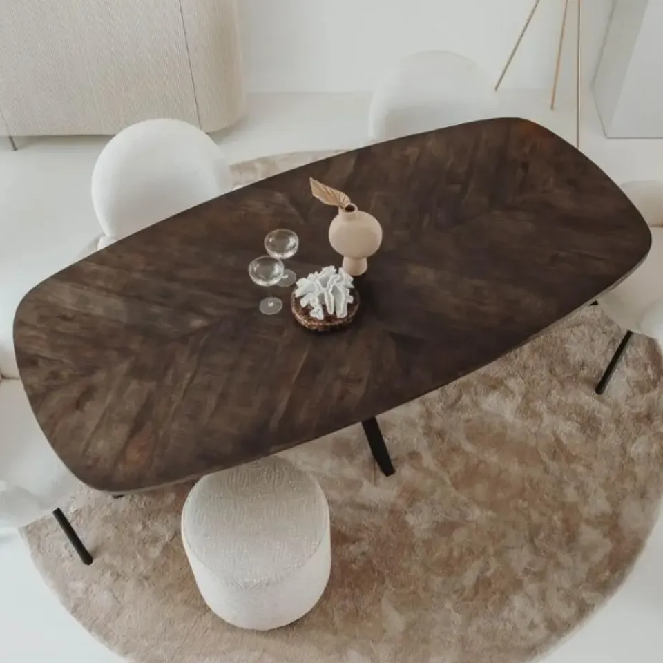 De Tower Living Silvi eettafelserie brengt een stijlvolle twist naar de traditionele eetruimte met haar unieke visgraatontwerp. Beschikbaar in zwart, naturel, en olijfbruin en maten variërend van 180x100x78 tot 240x100x78 cm, biedt deze serie voor ieder wat wils. Het visgraatpatroon, gecombineerd met het rijke mangohout, zorgt voor een opvallend meubelstuk dat onmiddellijk de aandacht trekt. Of u nu kiest voor de warme uitstraling van naturel hout, de diepe tonen van olijfbruin, of de moderne elegantie van zwart, elke tafel verzekert een duurzaam en tijdloos middelpunt in uw eetruimte.