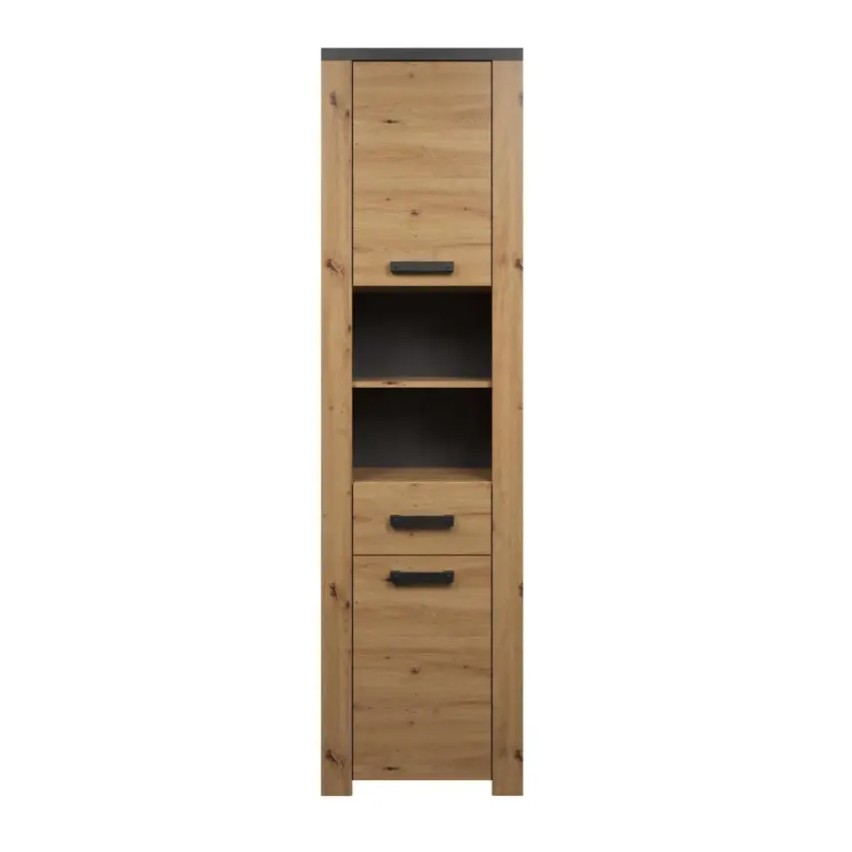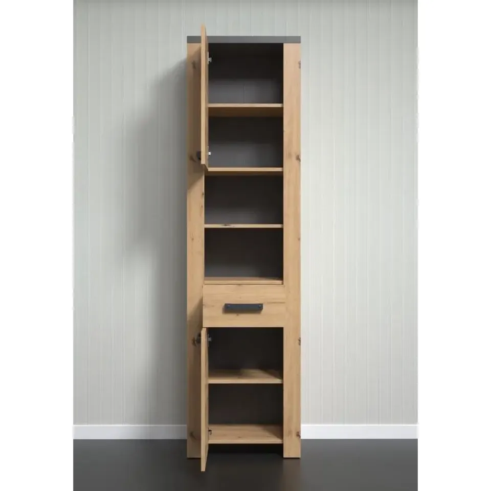 Upgrade je badkamer met onze stijlvolle hoge badkamerkast uit de Follow-serie. Deze kast, met zijn elegante Artisan Oak-ontwerp, combineert functionaliteit en esthetiek perfect. Met twee draaideuren, een handige lade en twee open opbergvakken, biedt deze kast ruimte voor al je badkamerbenodigdheden.